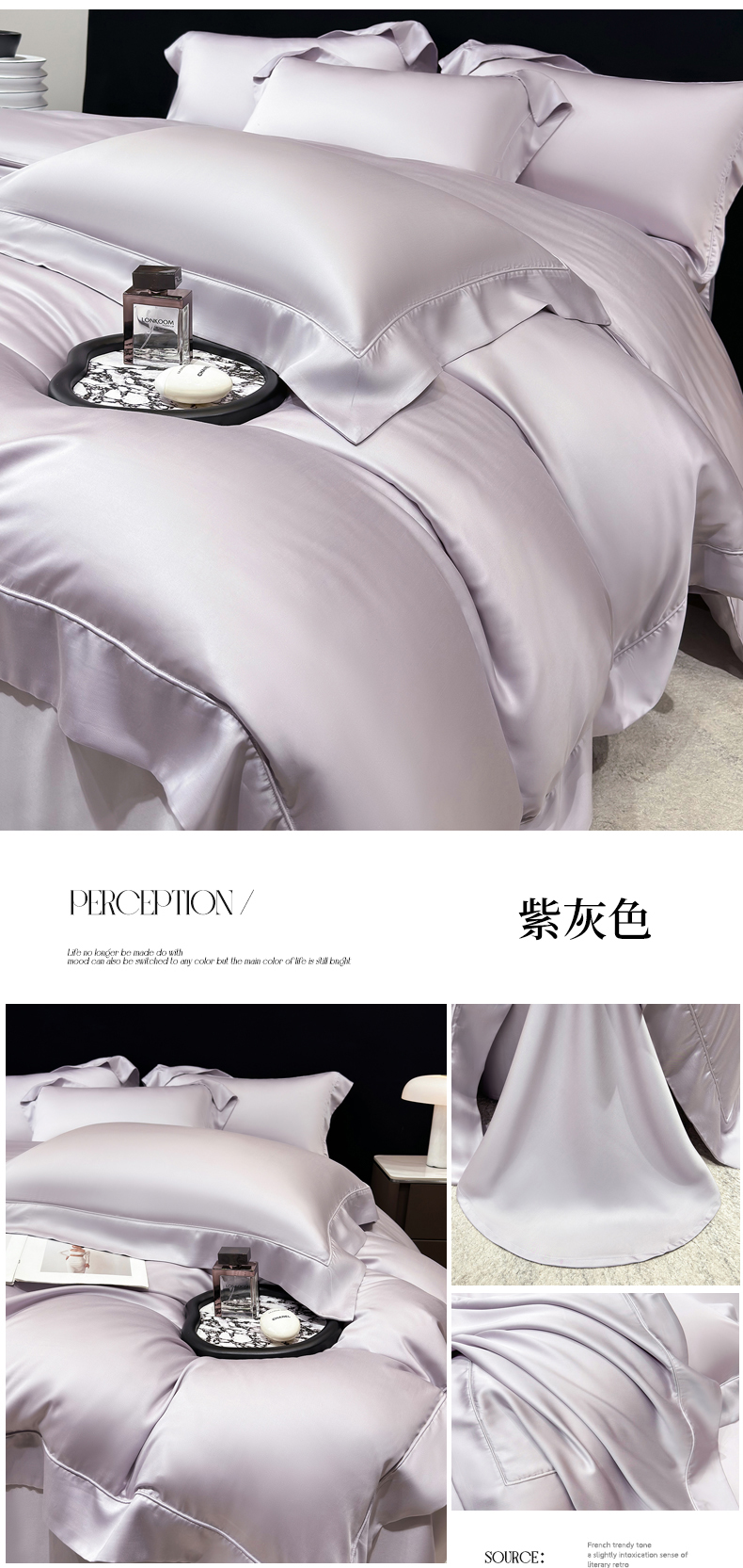 (总)星蕴家纺 2026新款贡缎长绒棉纯色四件套-多米,多米-优雅紫,多米-山灰色,多米-珍珠白,多米-香槟金