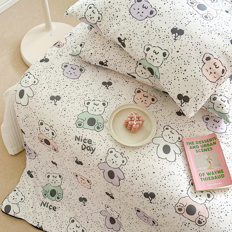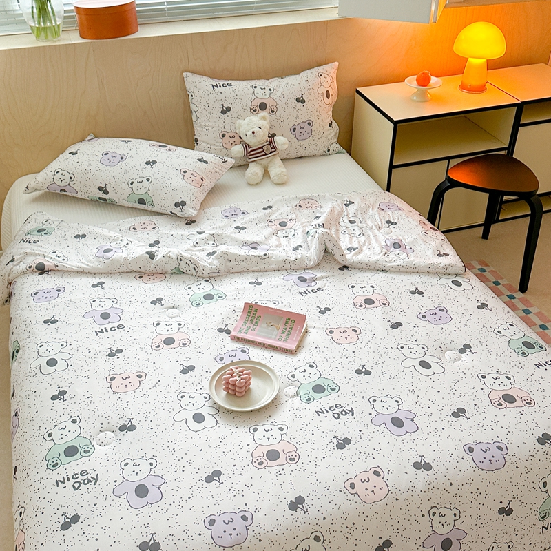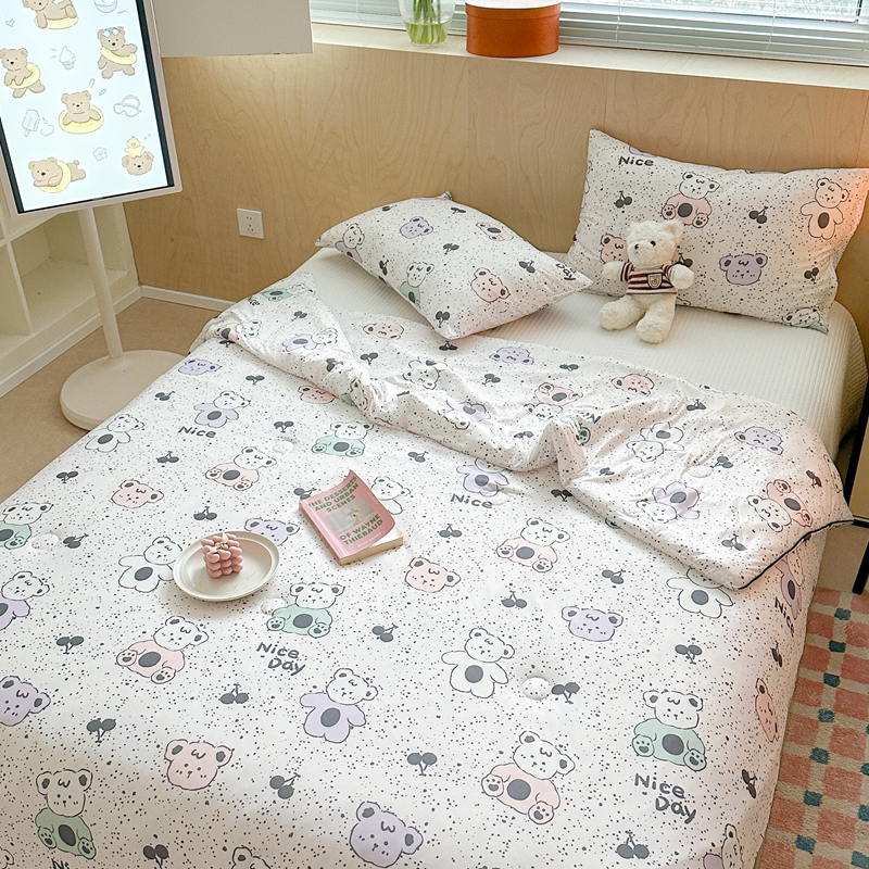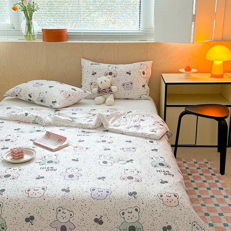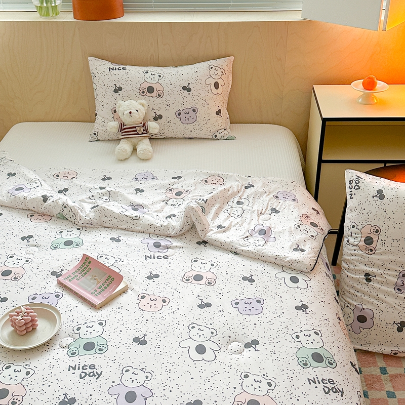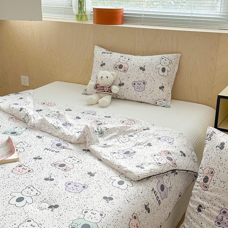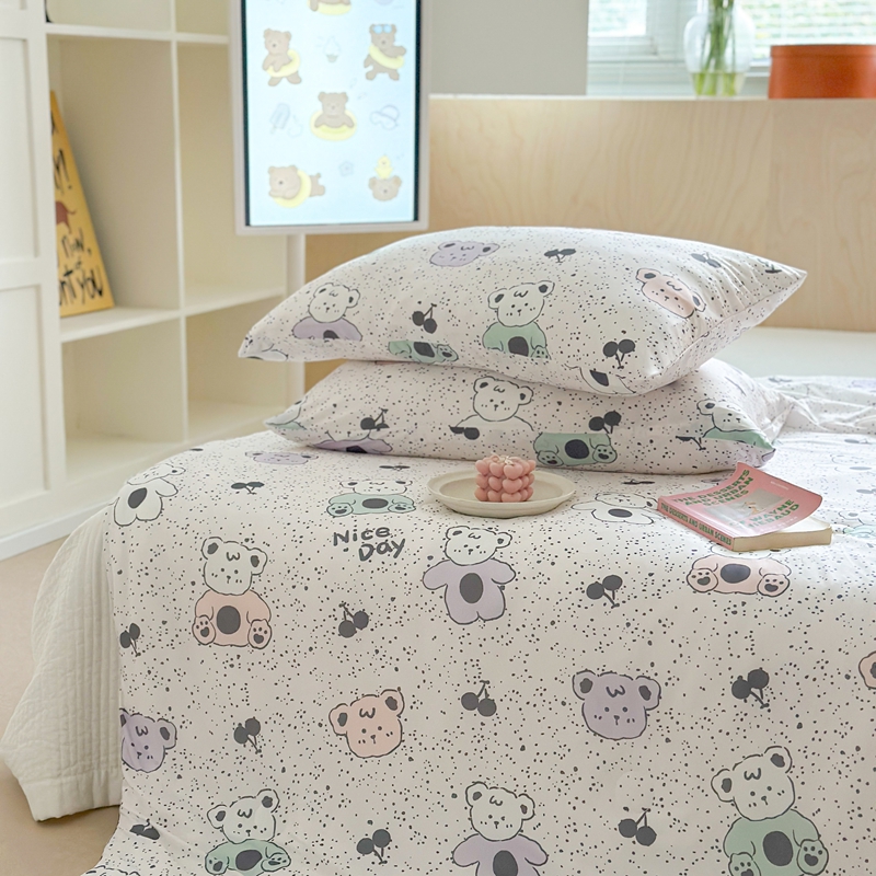 (总)暖生活 2025新款全棉磨毛毛巾绣床笠三件套,组合,山竹小白,黄鸭小兔,蓝帽腊肠狗,手办小熊,蓝格红苹果,红鼻小熊,黑猫蛋糕,糖果熊,推车小熊