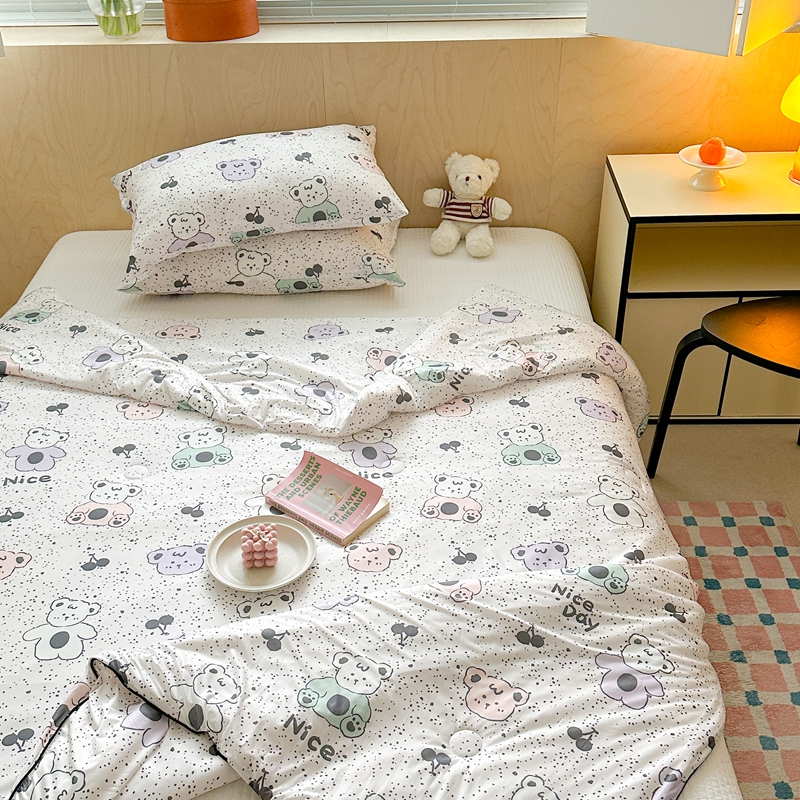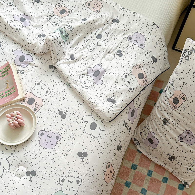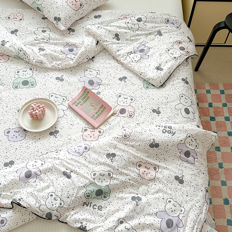 (总)暖生活 2025新款兔绒贴布绣牛奶绒套件四件套(会员-5),小泰迪,红围巾小狗,线团小猫,泳圈企鹅