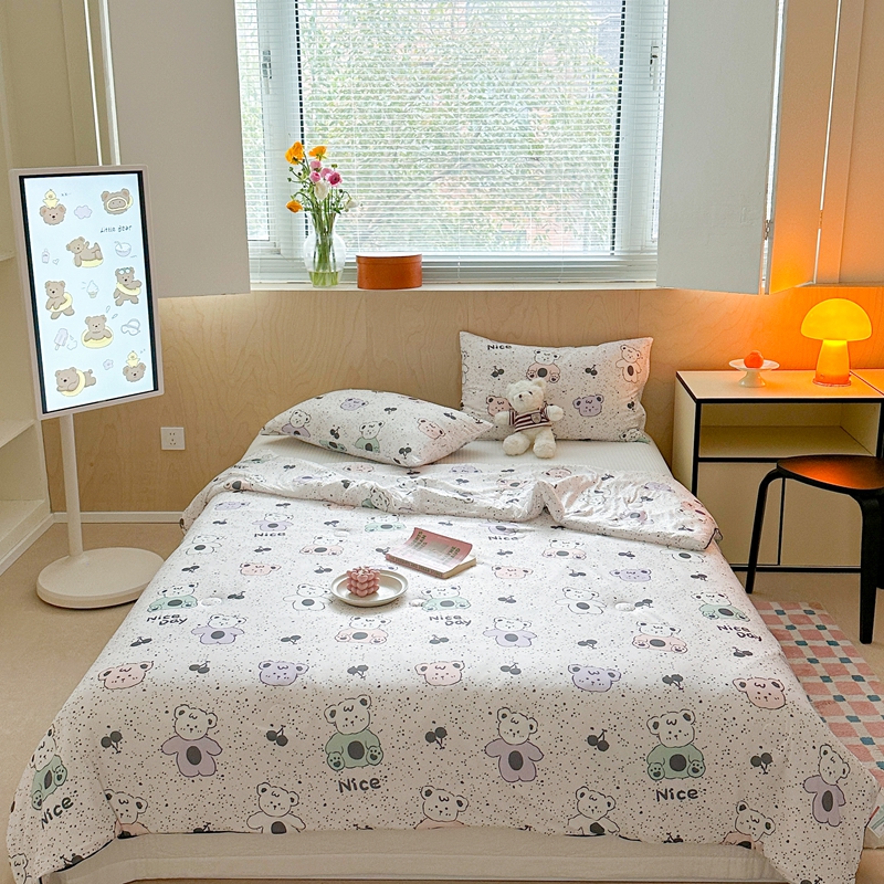 (总)暖生活 2025新款高克重细颗粒羊羔绒牛奶绒毛巾绣四件套,梅梅熊,童年时光-兰,童年时光-米,小短腿