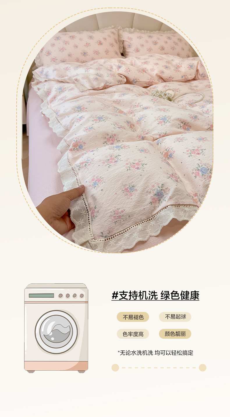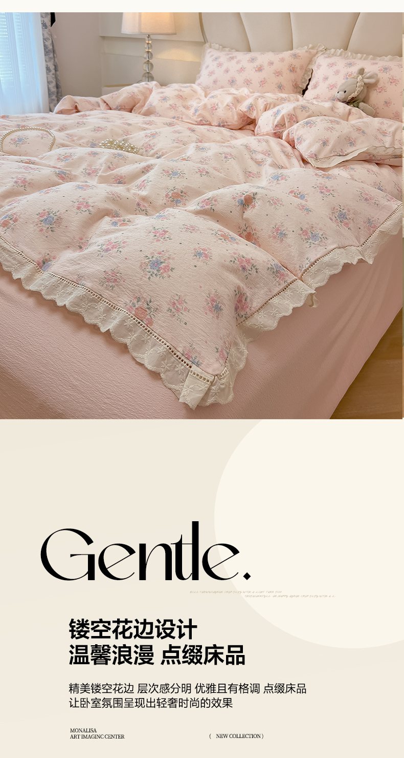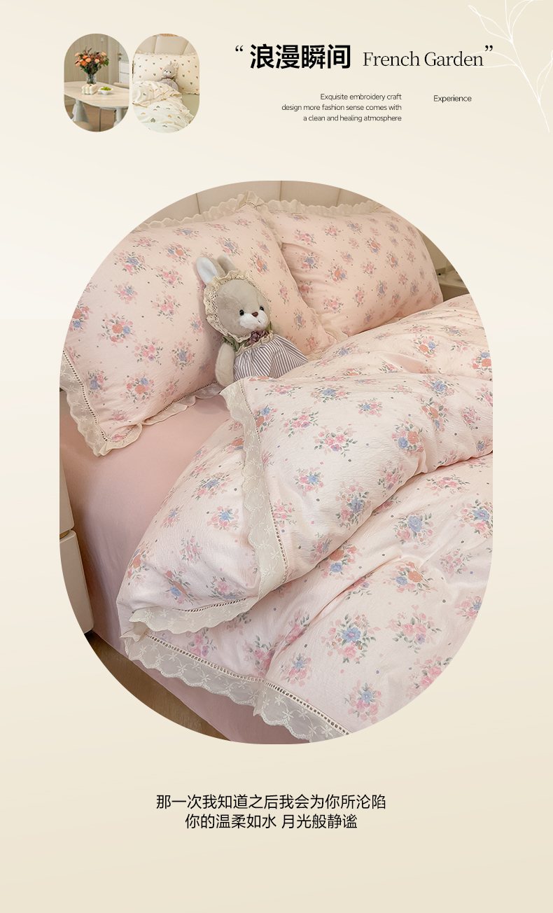 当前位置: 91家纺网 > 商品网购 > 床品套件 > 四件套 > 其它四件套 > 韩巢家纺 2025新款双层纱镂空花边被套直播热销款四件套(提供卖家秀) 镂空花边款-芊芊花海