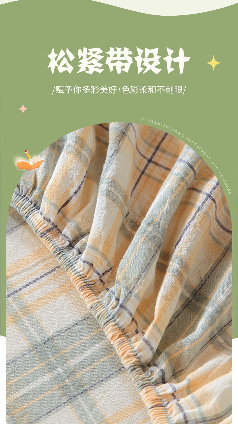 春皖家纺 2025新款学生季全棉纯棉色织AB版水洗棉单品系列-单床笠 床笠单件 翠竹-果条