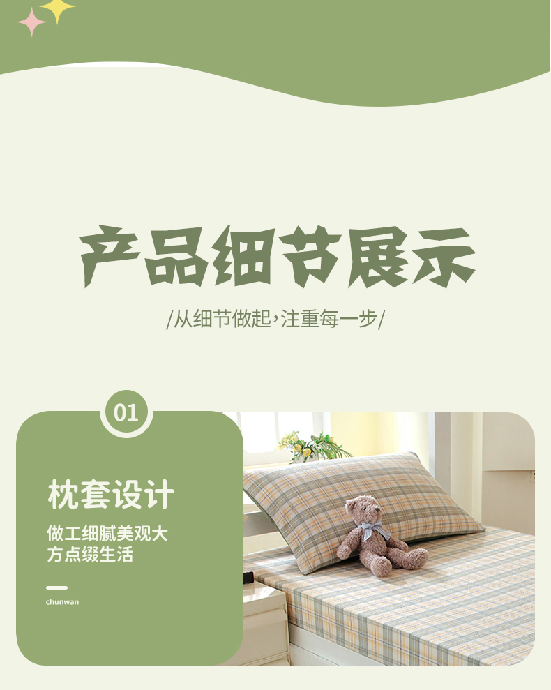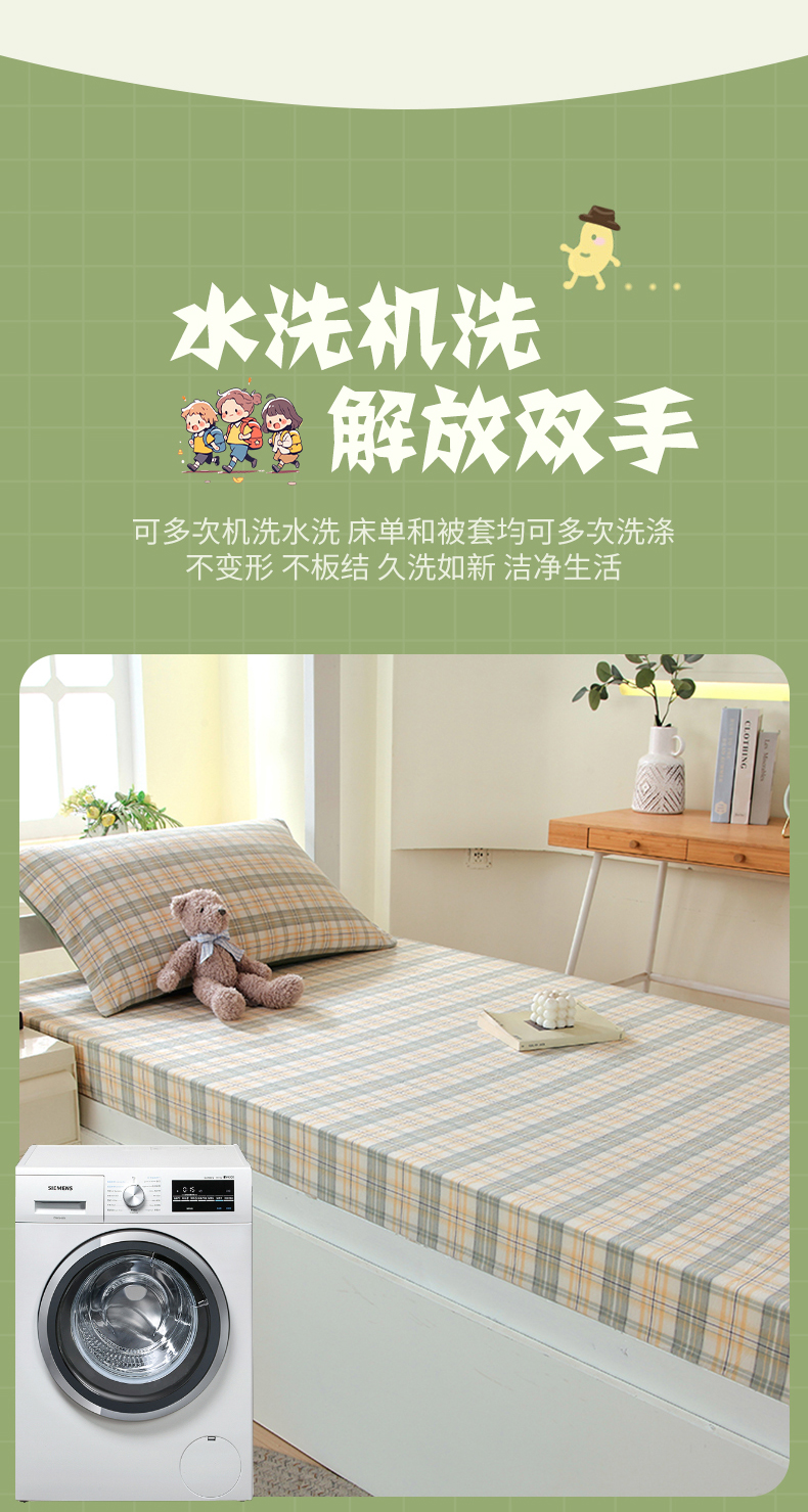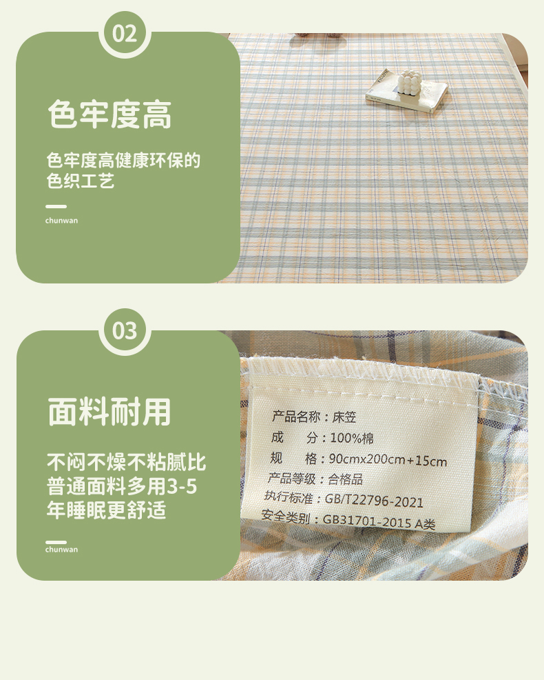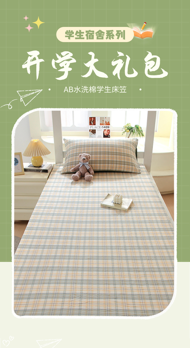 • 91家纺网 家纺一手货源 找家纺 春皖家纺 2025新款学生季全棉纯棉色织AB版水洗棉单品系列-单床笠 床笠单件 翠竹-果条