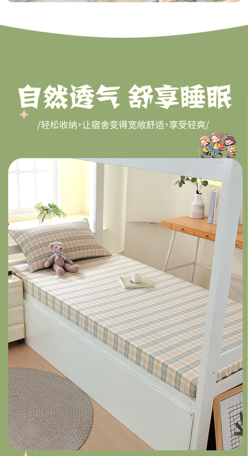 当前位置: 91家纺网 > 商品网购 > 床上用品 > 床笠 > 春皖家纺 2025新款学生季全棉纯棉色织AB版水洗棉单品系列-单床笠 床笠单件 翠竹-果条