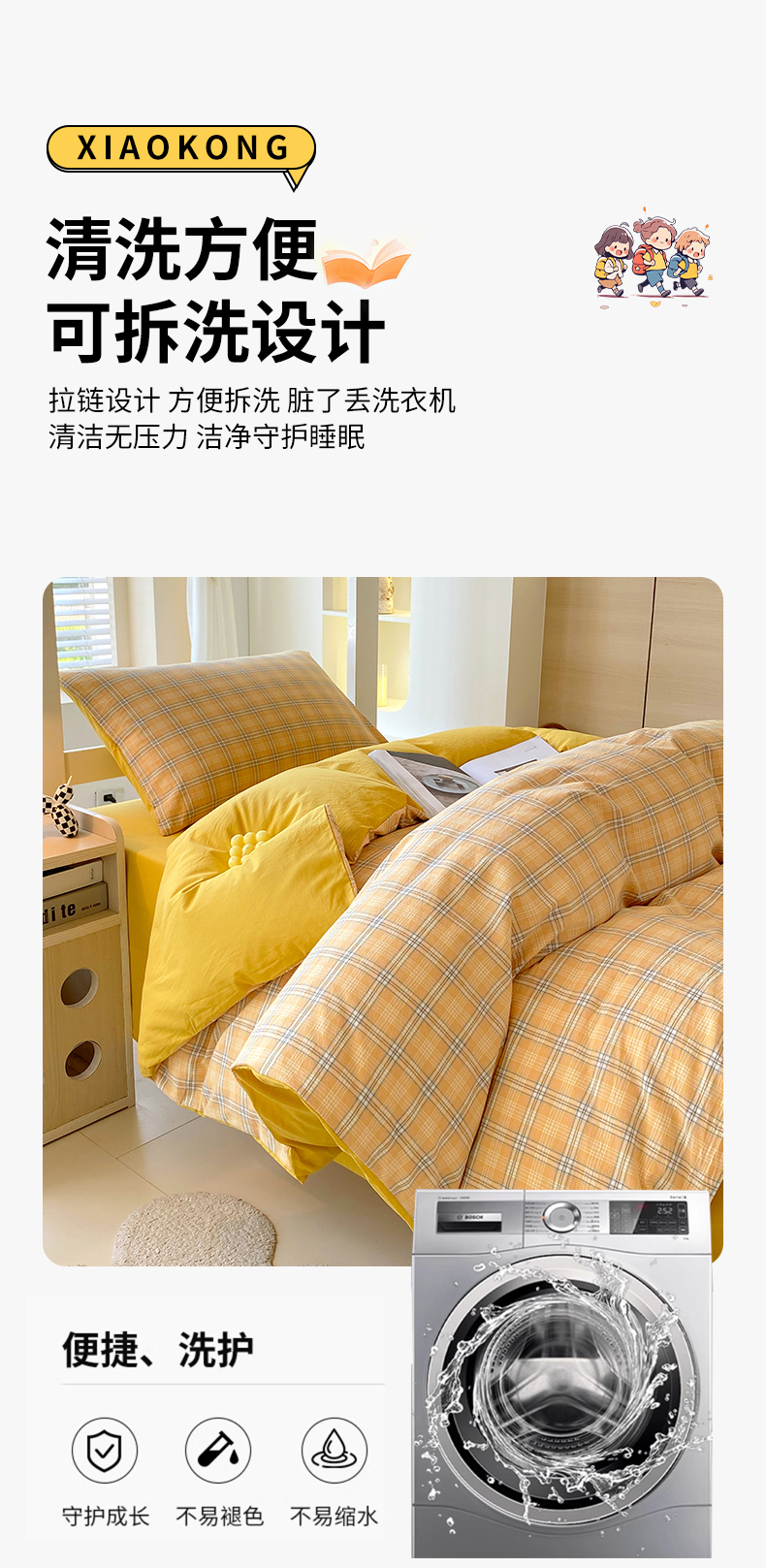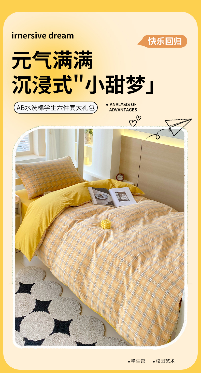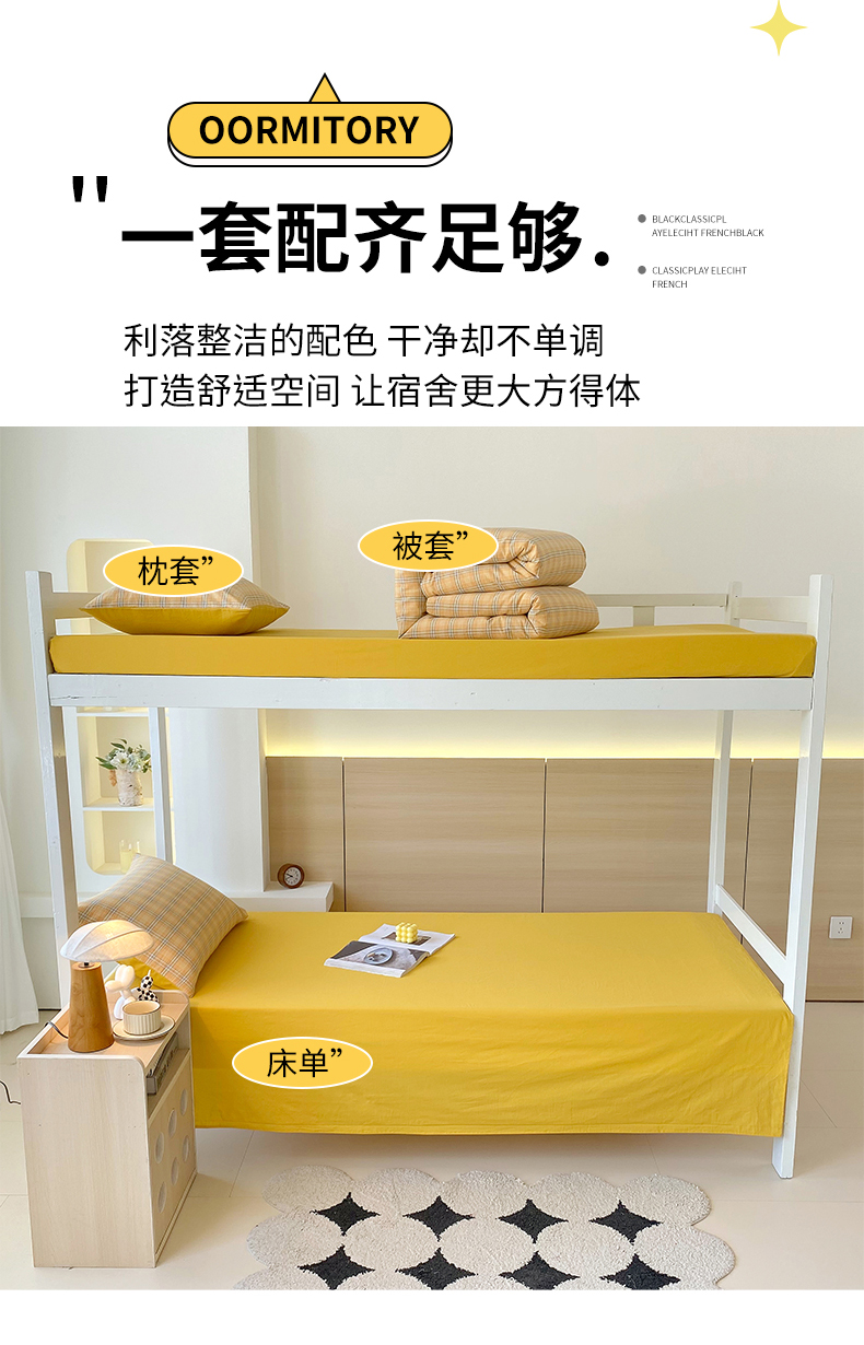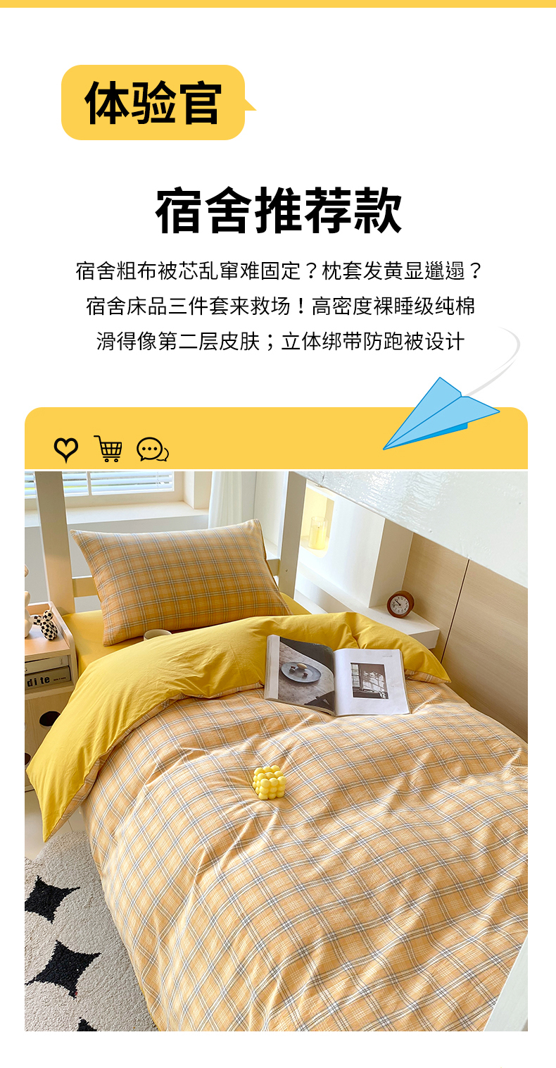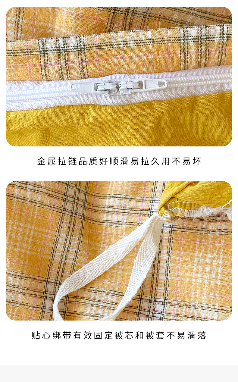 当前位置: 91家纺网 > 商品网购 > 床品套件 > 四件套 > 全棉普通四件套 > 春皖家纺 2025春夏新款AB版全棉纯棉色织水洗棉学生三件套六件套 素雅-黄条