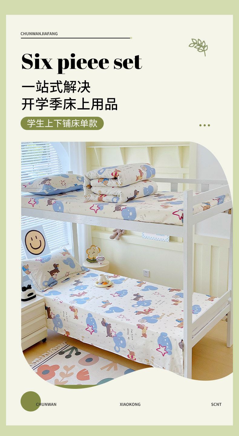 商品名称:(总)春皖家纺 2025新款学生季全棉纯棉13070印花单床单 床单单件
