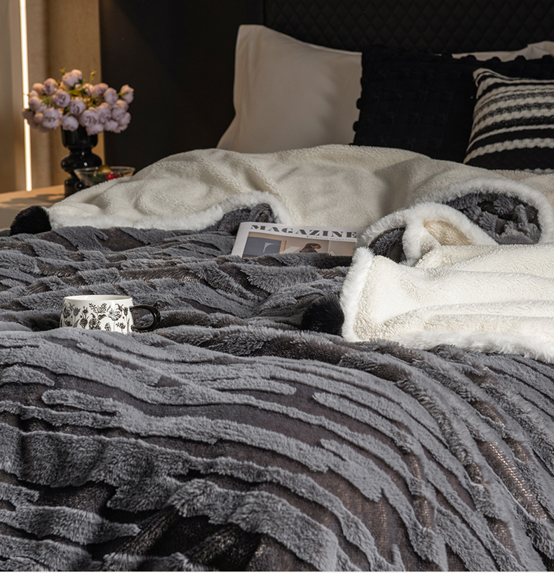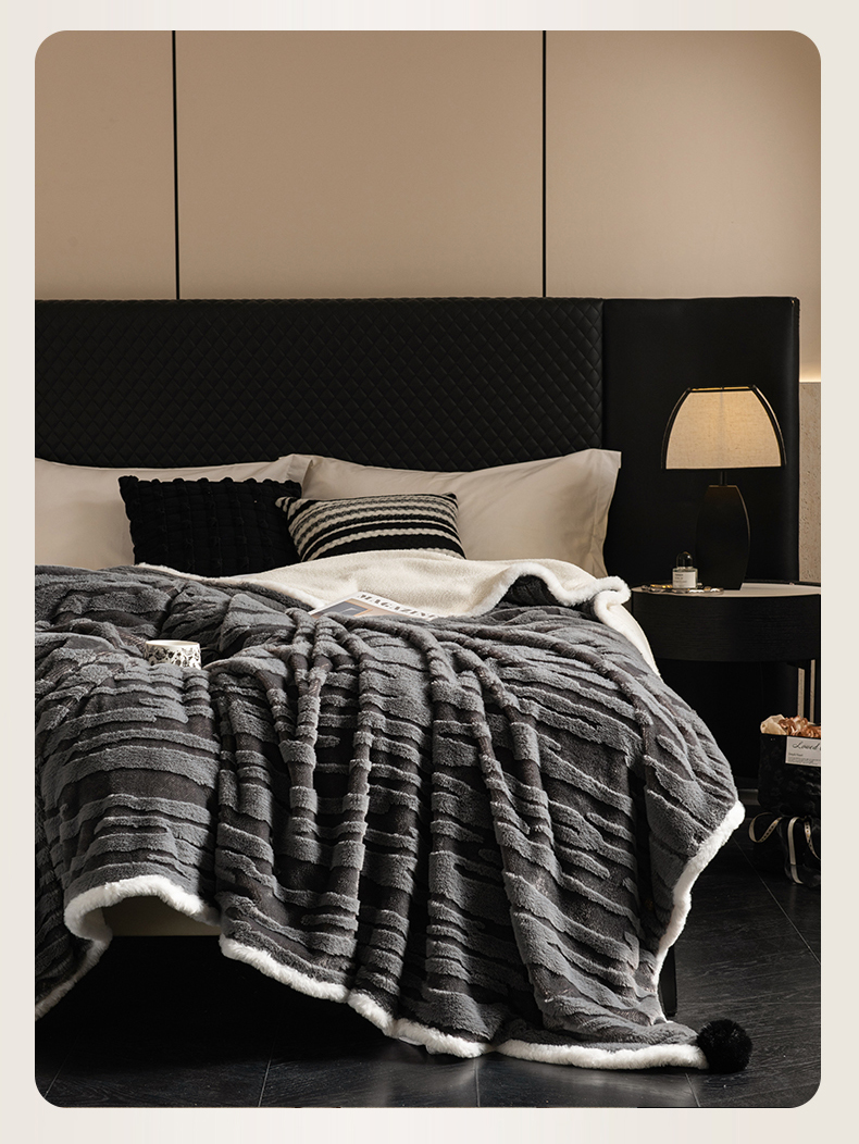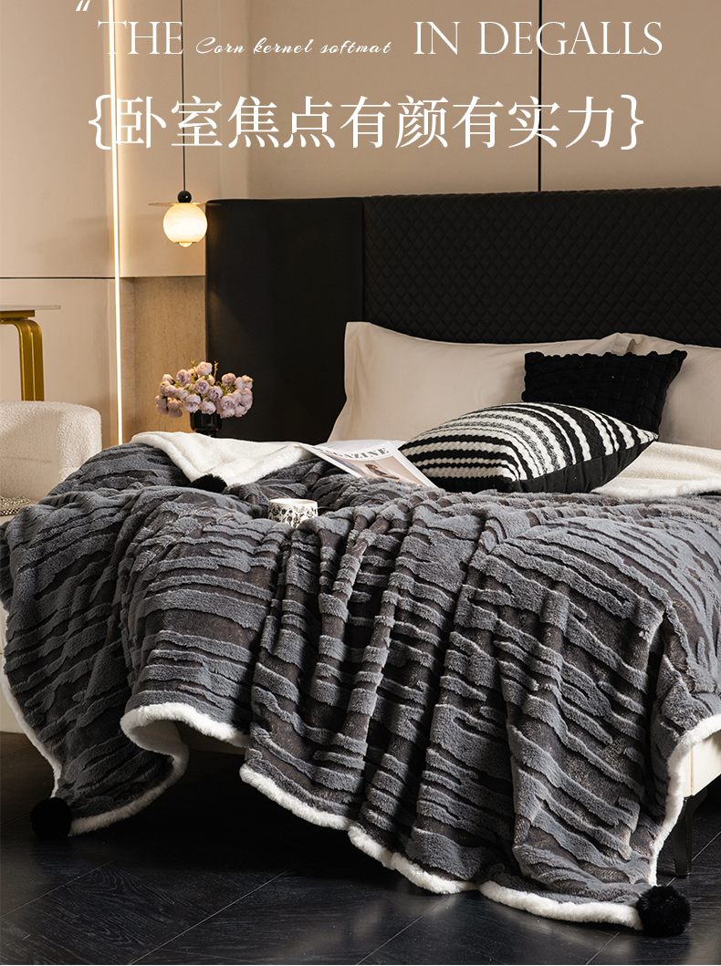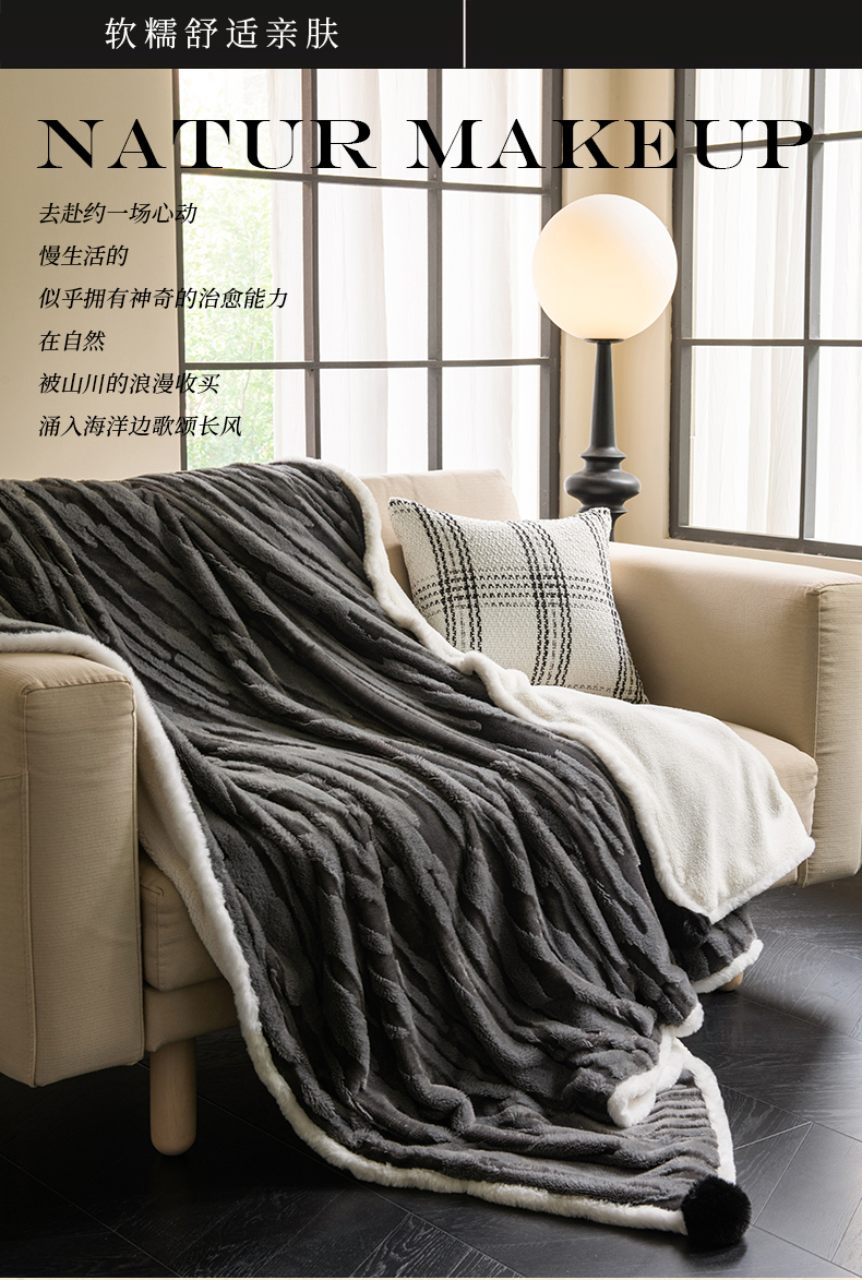 (总)潮邦创意家居 2025全新升级阳离子提花兔毛球毯毯子-雪兔波纹系列轻奢风格图