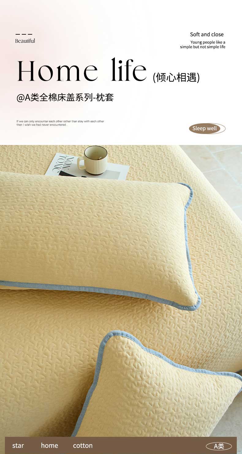 商品名称:春皖家纺 2025新款全棉纯棉多功能单枕套 枕套单件 洛格-黄
