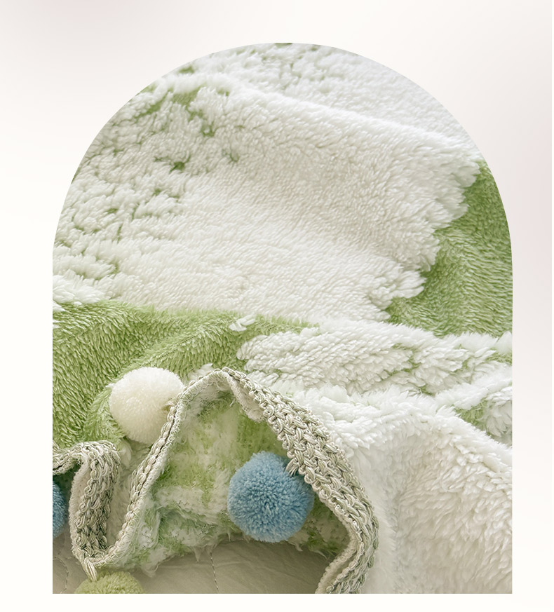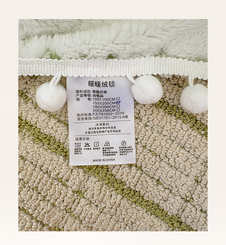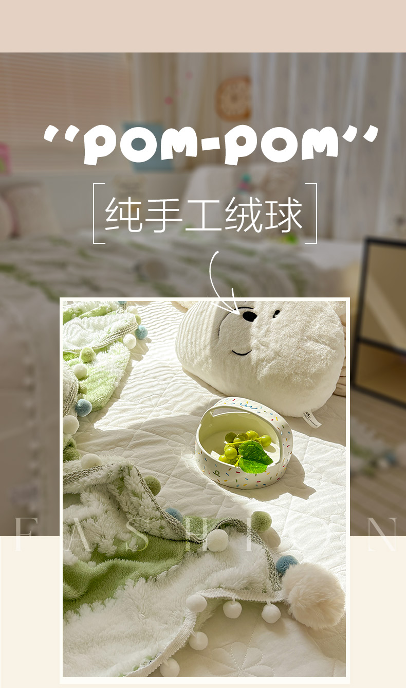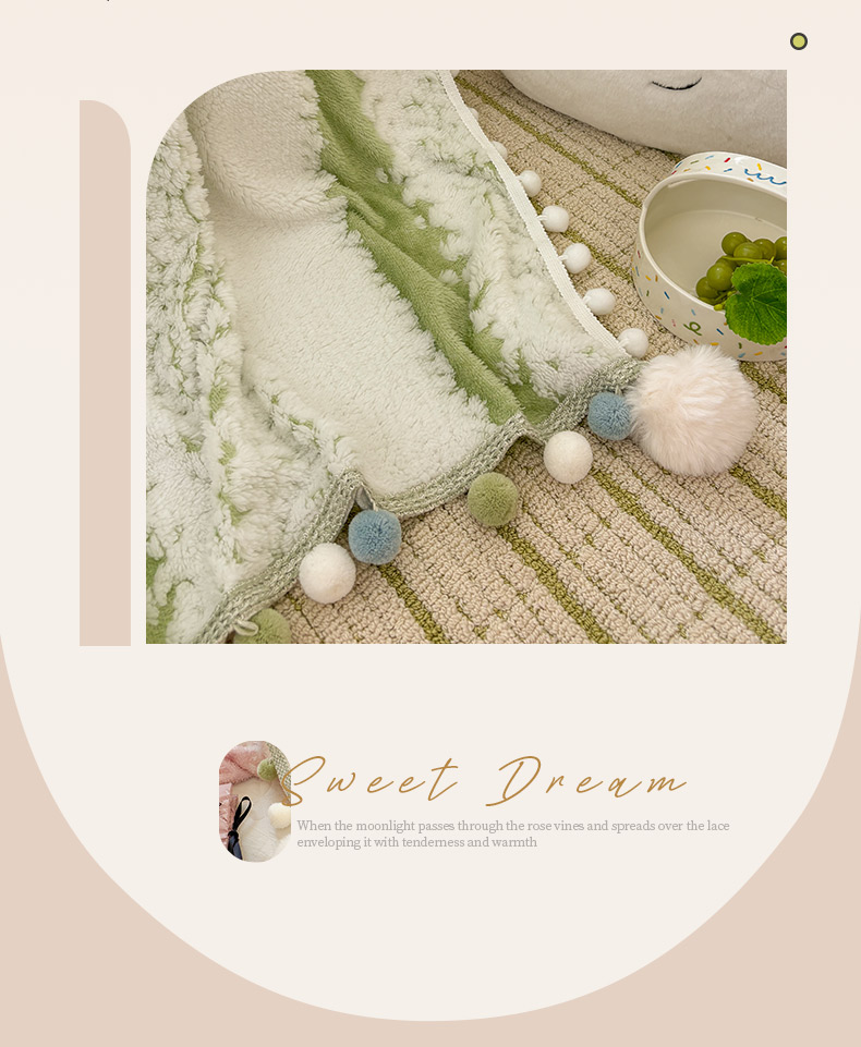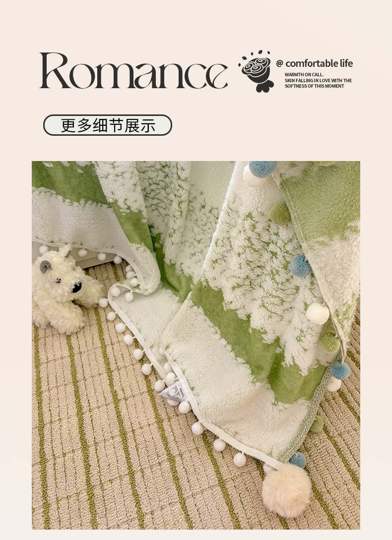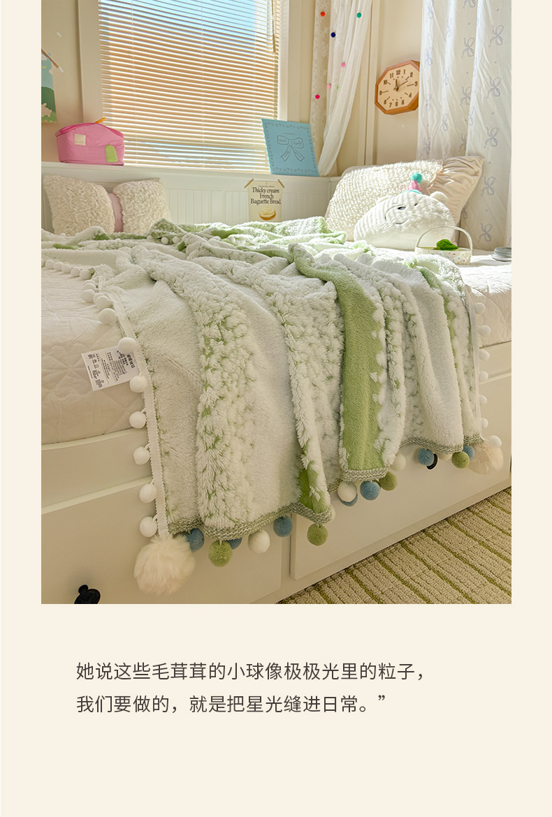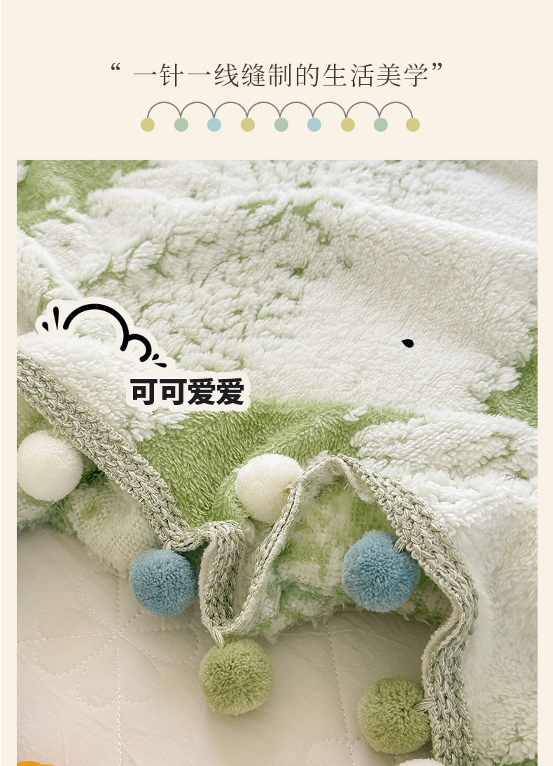 商品名称:潮邦创意家居 2025新款250G双色阳离子提花手工小球毯毛毯毯子暖球絮语 暖球絮语-香草绿