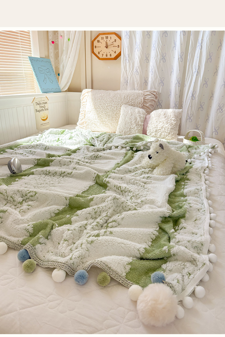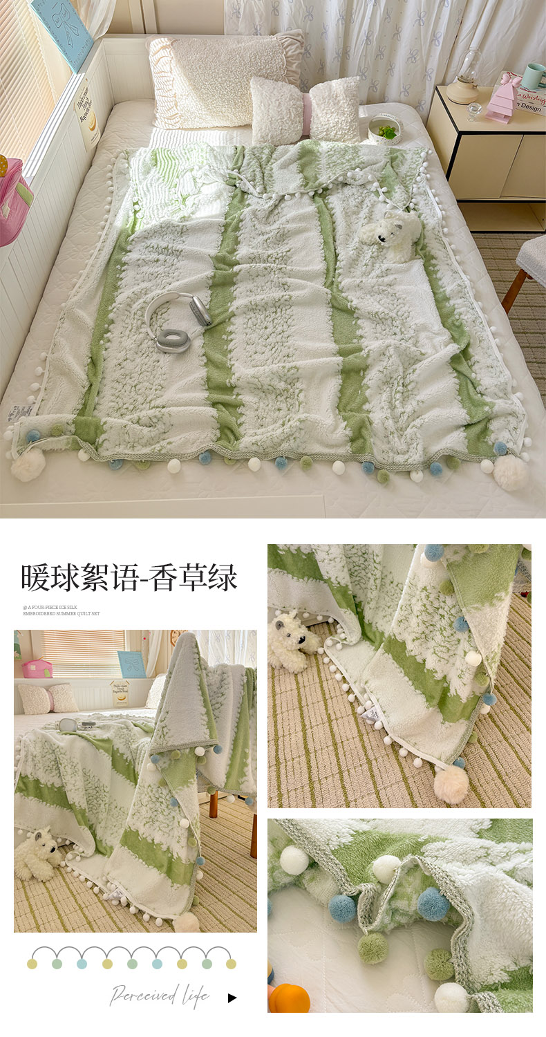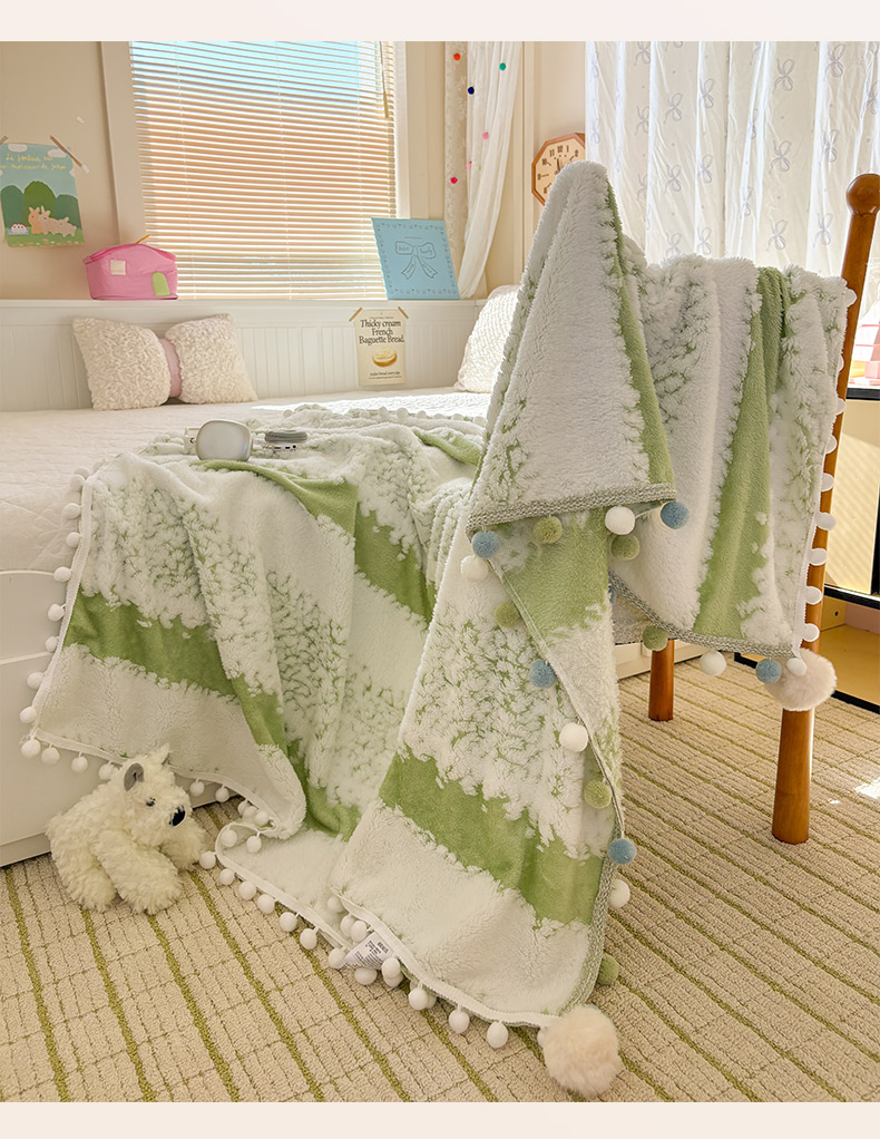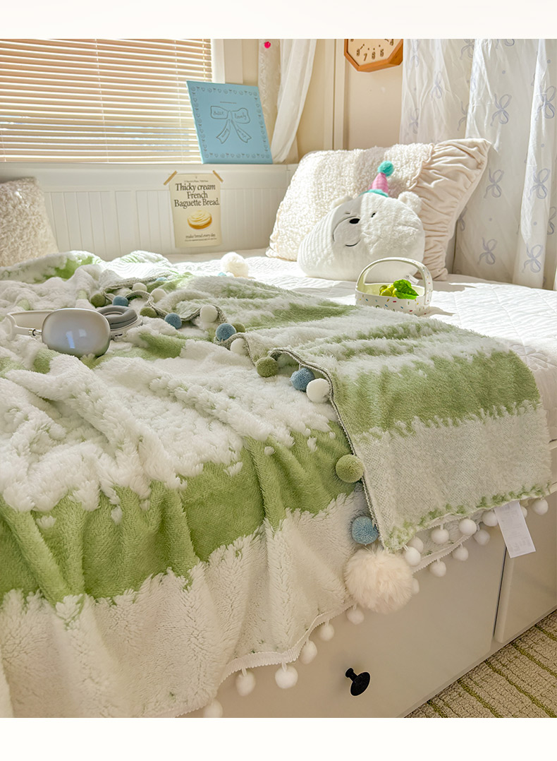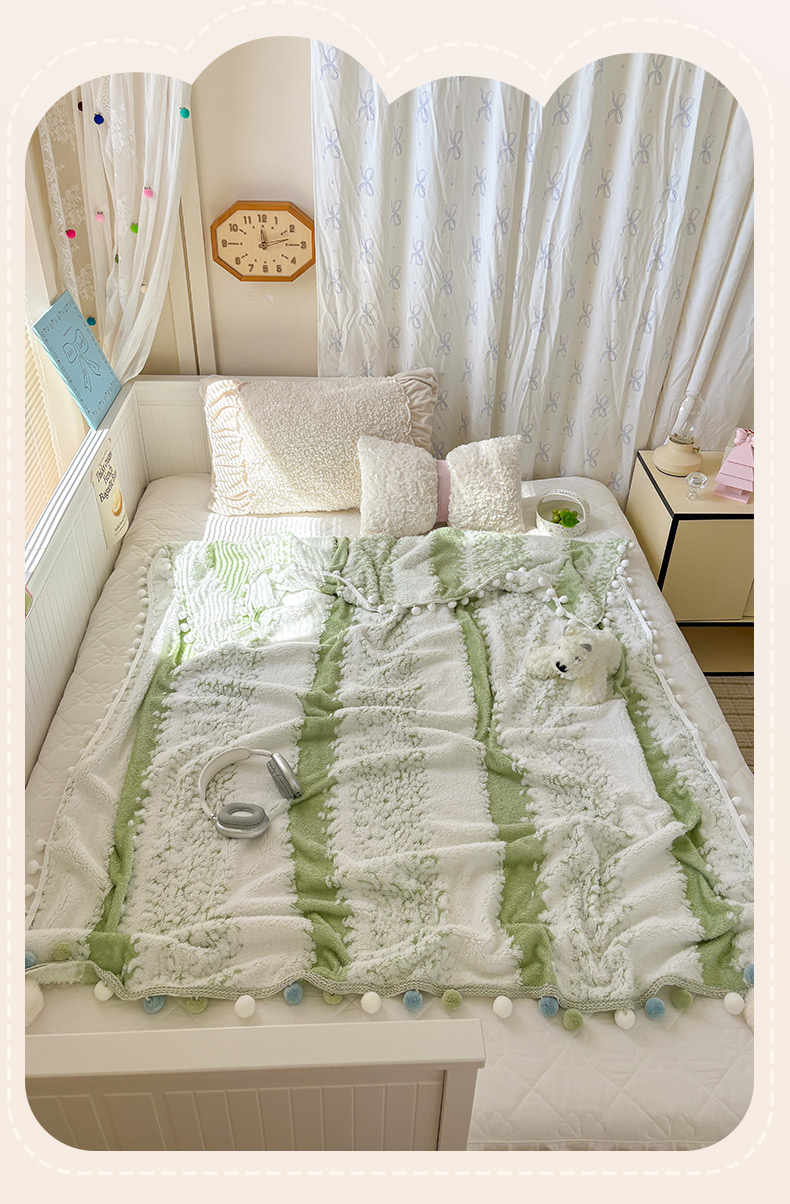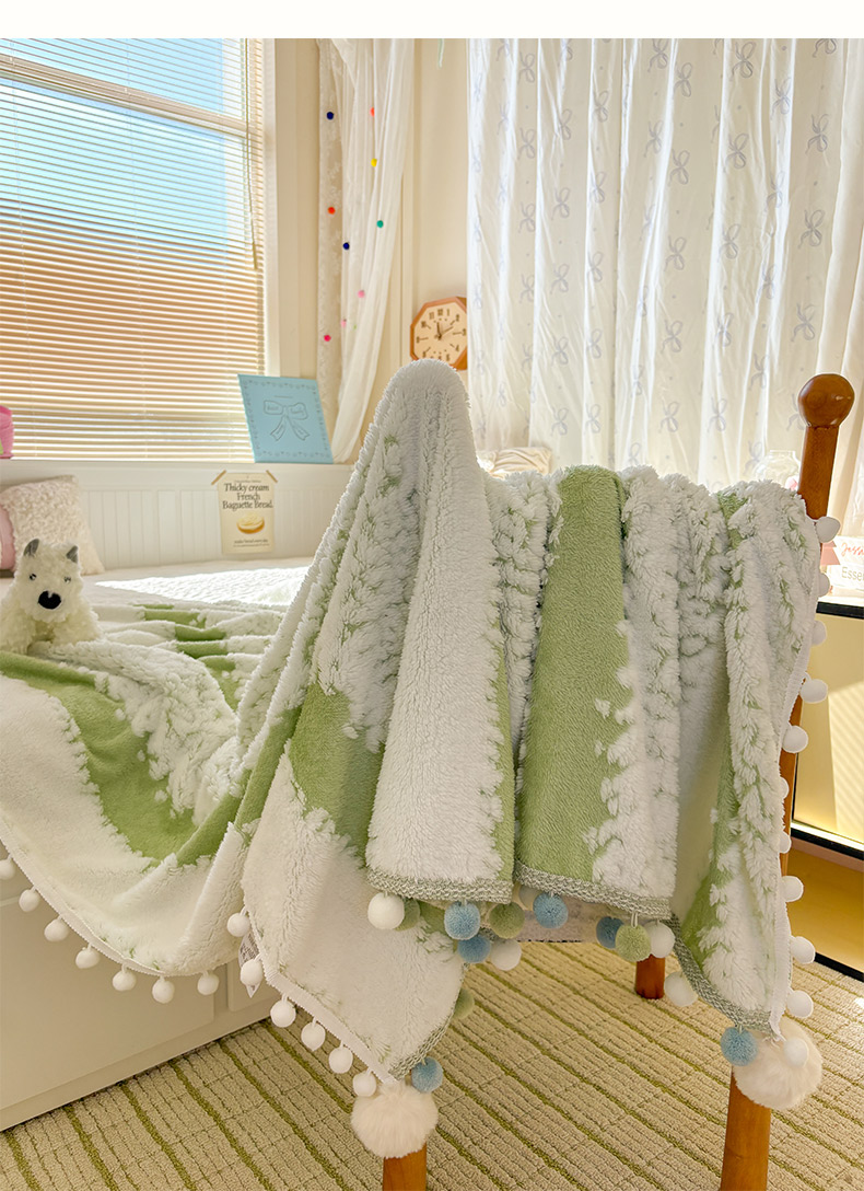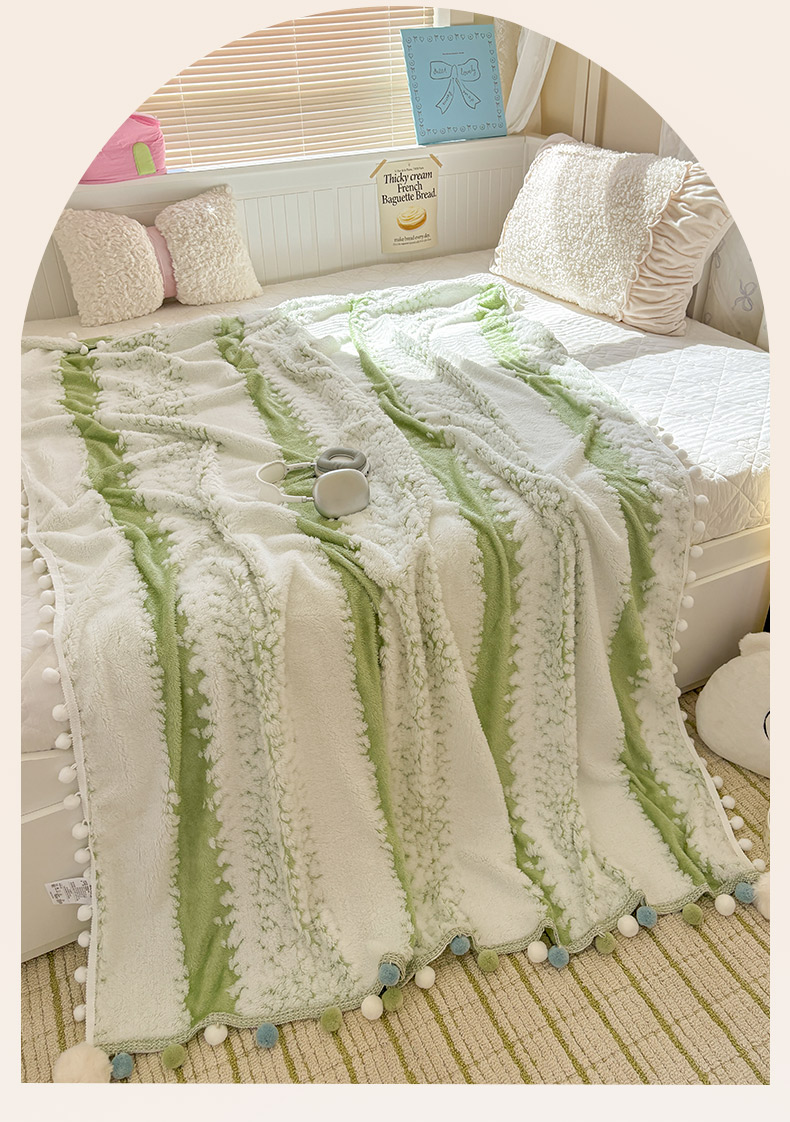 商品名称:潮邦创意家居 2025新款250G双色阳离子提花手工小球毯毛毯毯子暖球絮语 暖球絮语-香草绿