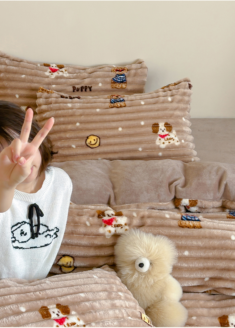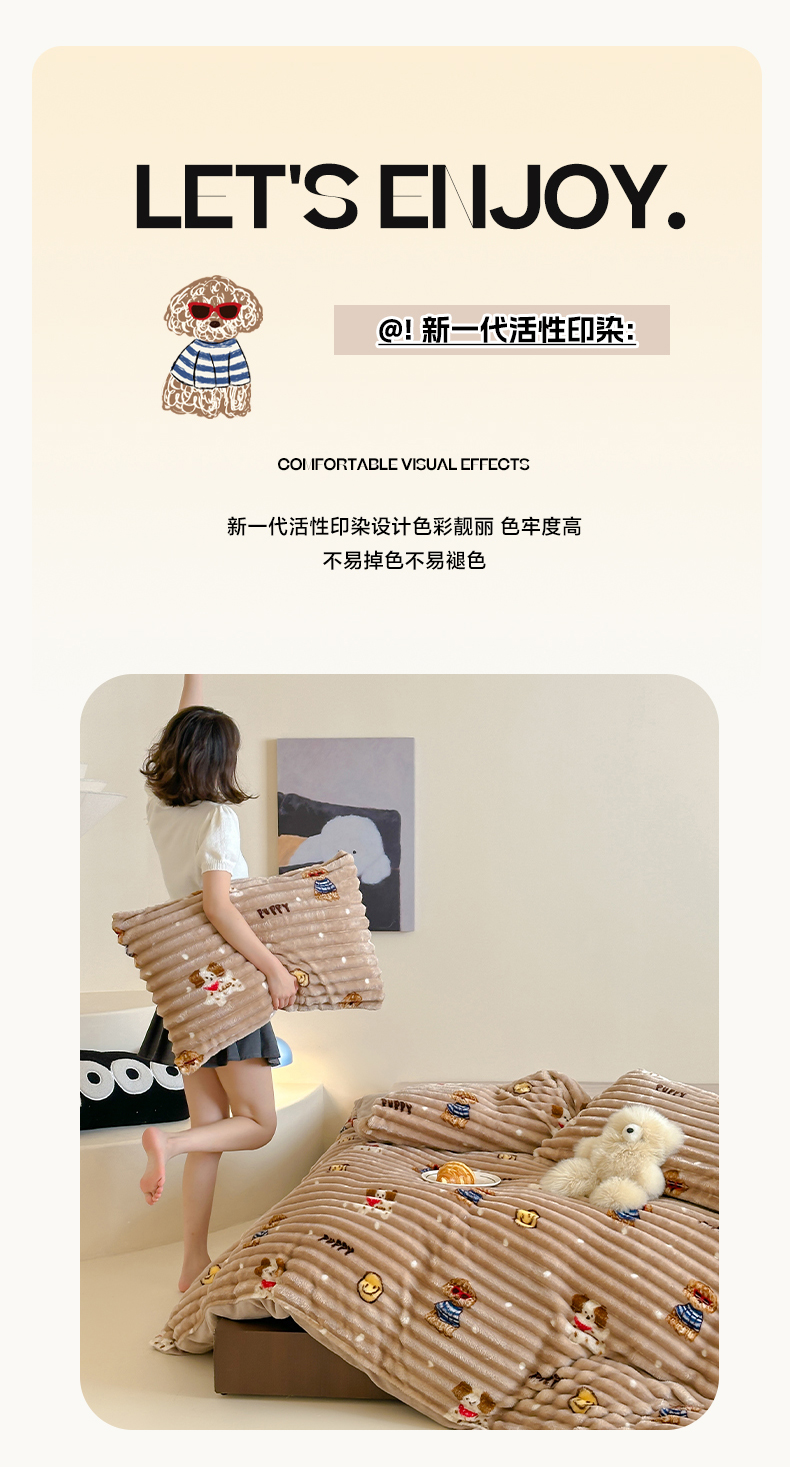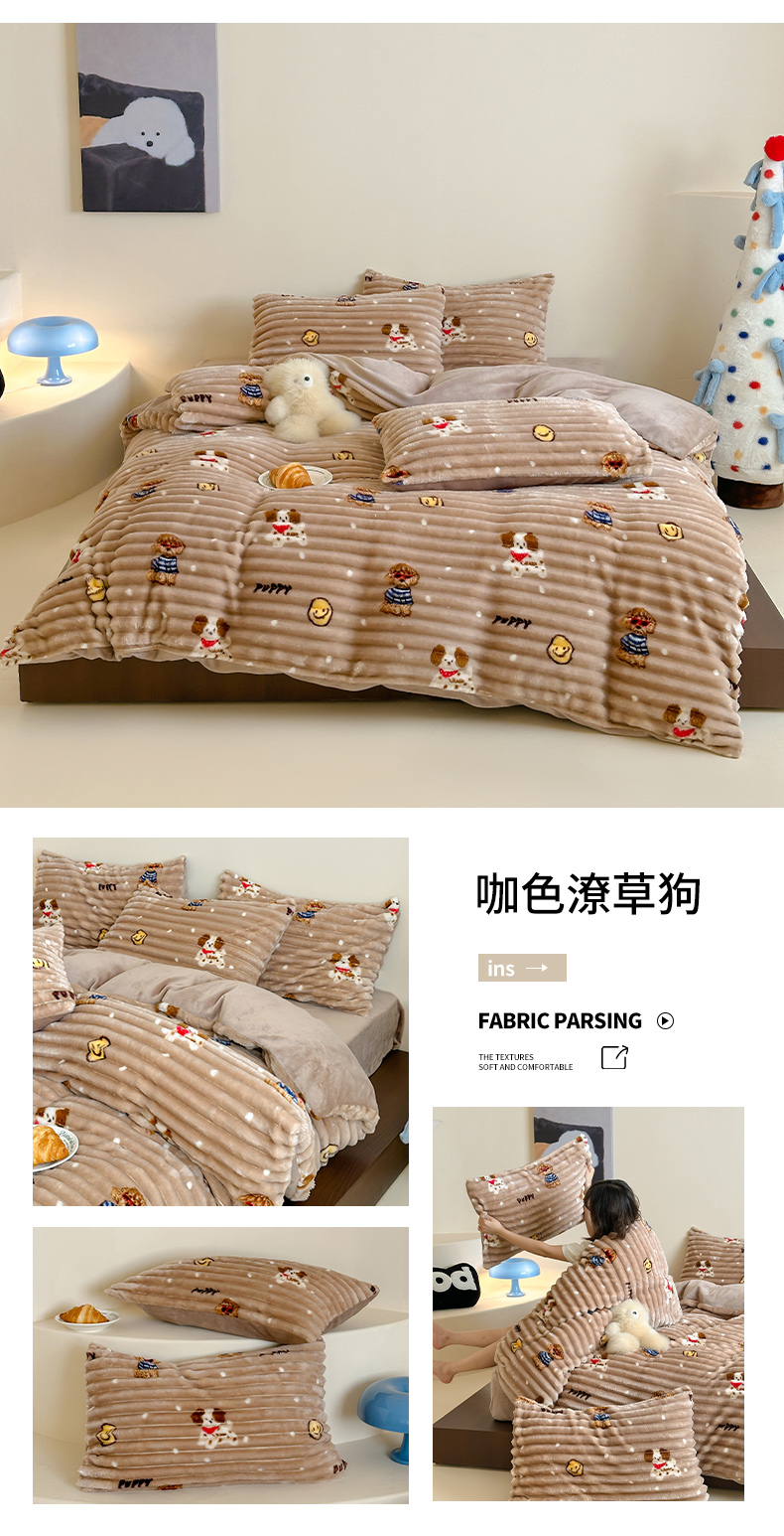 当前位置: 91家纺网 > 商品网购 > 床品套件 > 四件套 > 牛奶绒四件套 > RYB红黄兰 2025新款设计师原创A版抽条兔兔绒B版牛奶绒印花四件套 咖色潦草狗