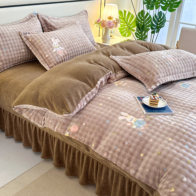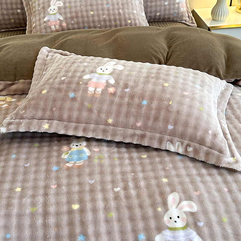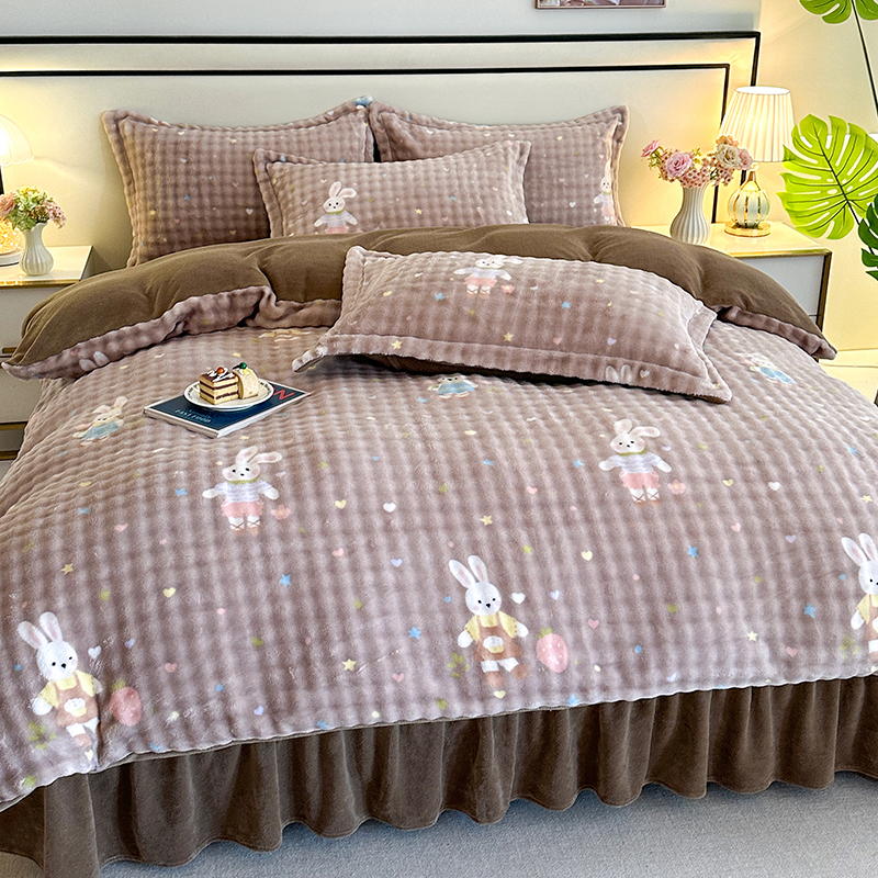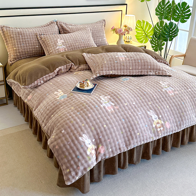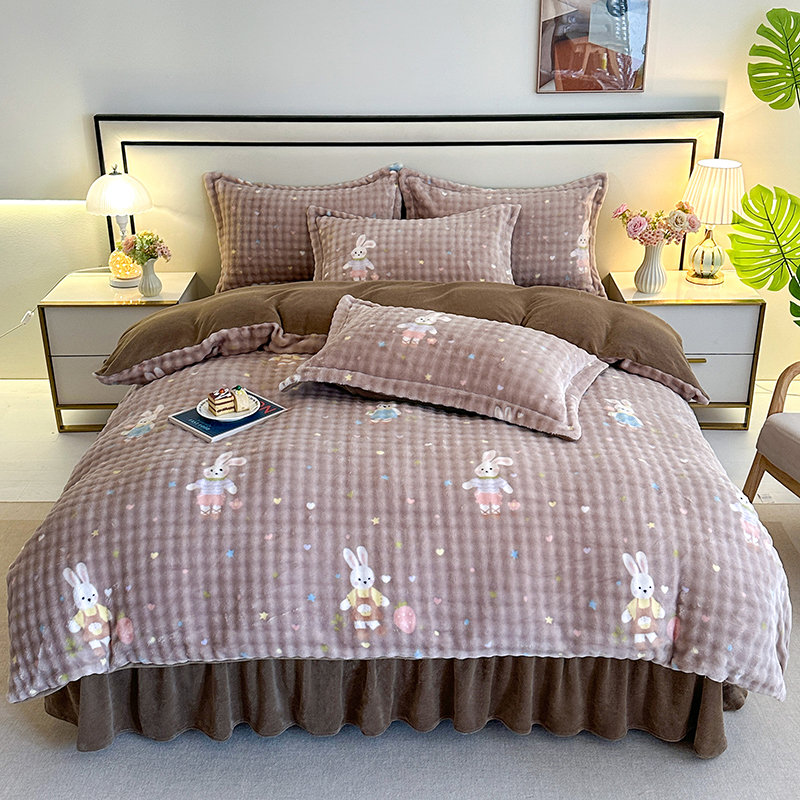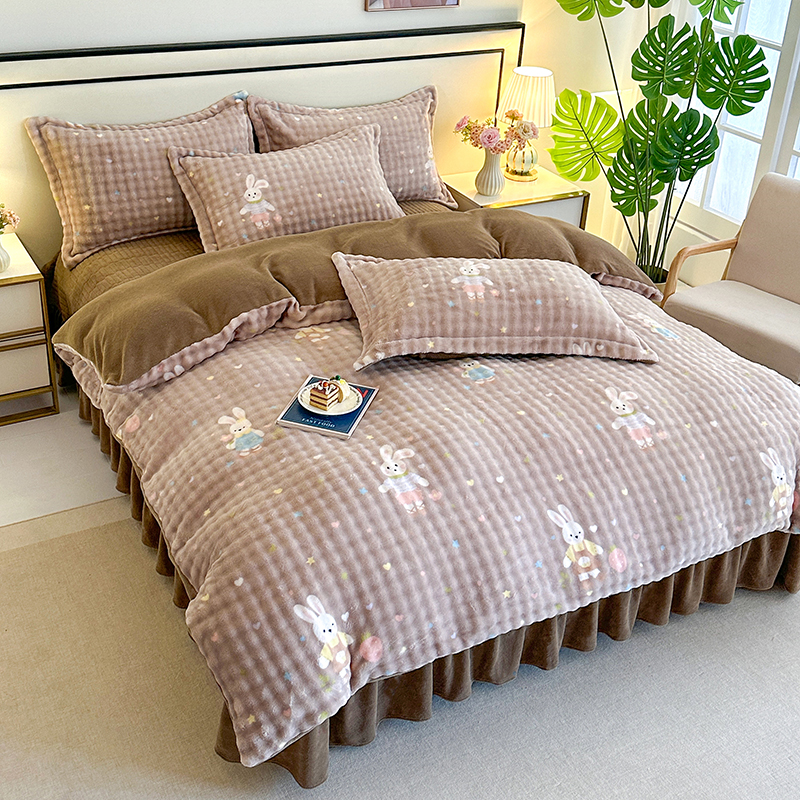 富缦庭 2025新款泡泡牛奶绒床盖款四件套 草莓兔