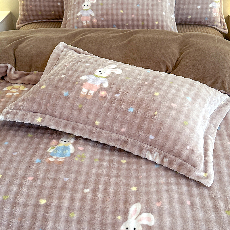 商品名称:富缦庭 2025新款泡泡牛奶绒床盖款四件套 草莓兔