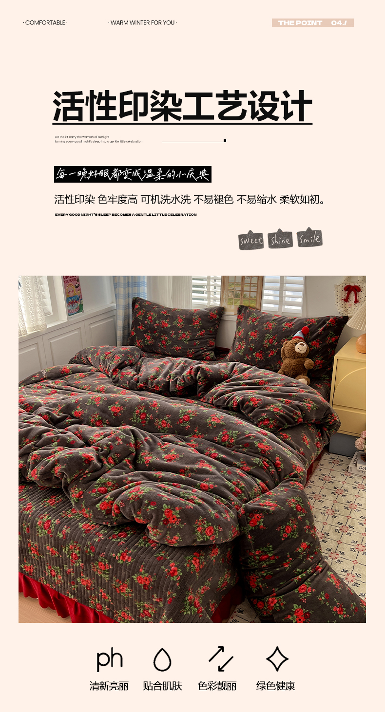 当前位置: 91家纺网 > 商品网购 > 床品套件 > 四件套 > 其它四件套 > 逸林家纺《原希尔顿逸林》 2025新款牛奶绒床盖四件套加厚印花法式赫本风花边床盖四件套 床盖款-玫瑰的故事