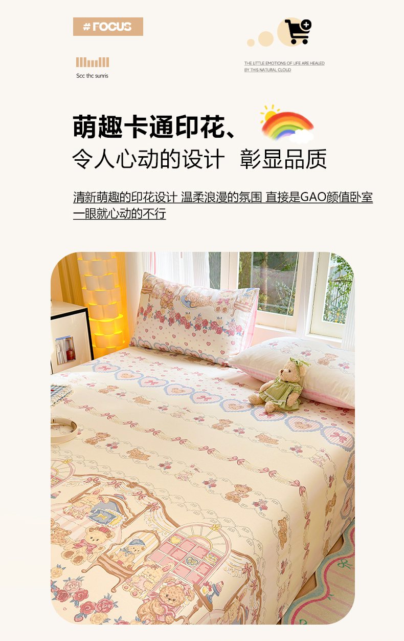 当前位置: 91家纺网 > 商品网购 > 床上用品 > 床单 > 清雅福 2025新款全棉柔软印花系列单床单 安缦小熊