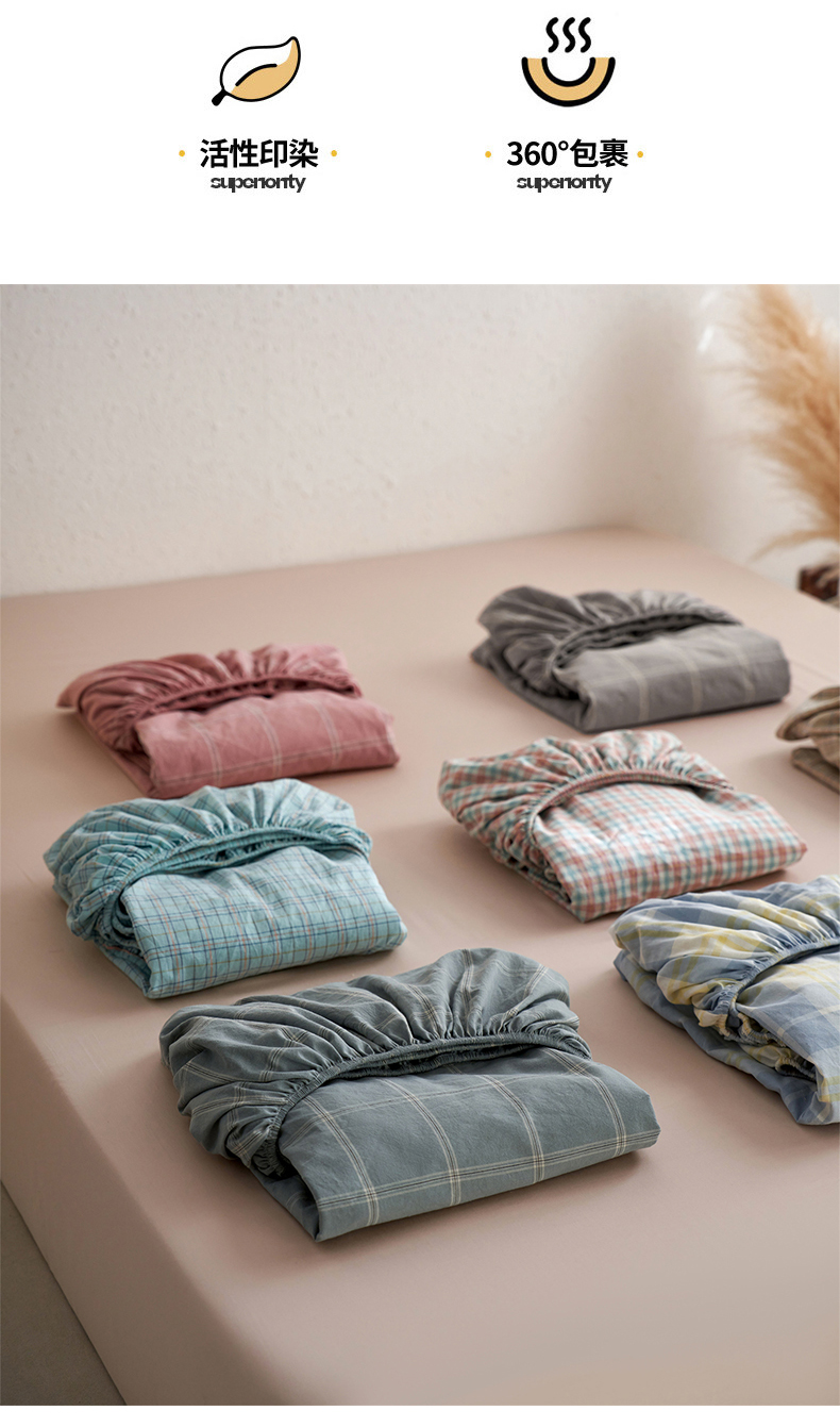 (总)启程家纺 2026新款全棉纯棉色织水洗棉单床笠床笠单件单品床笠