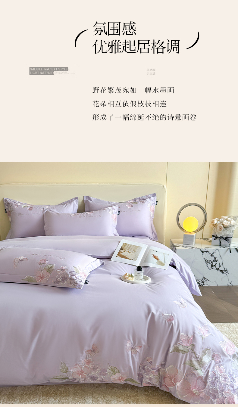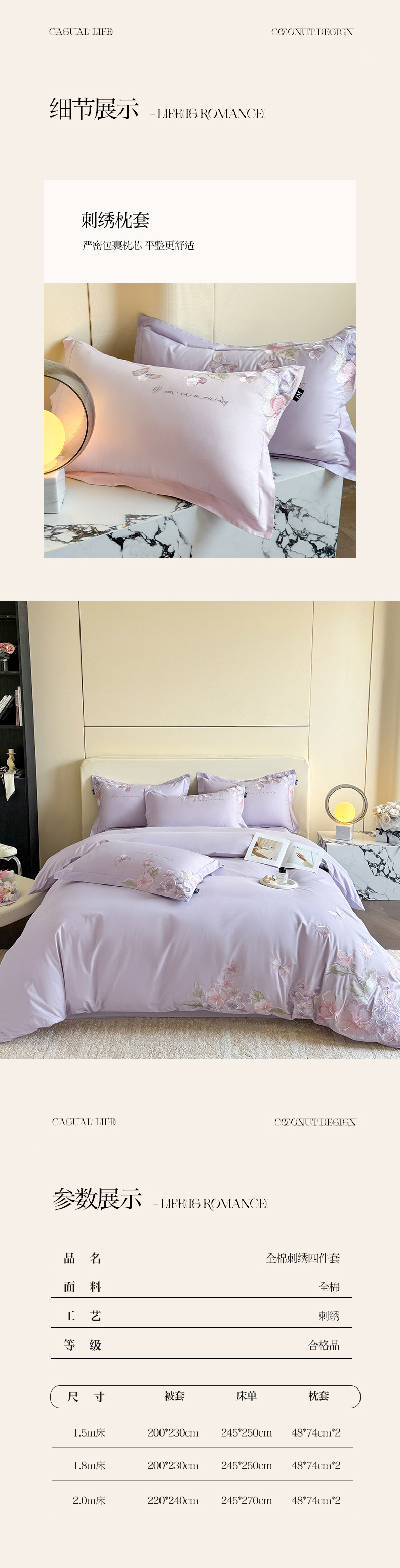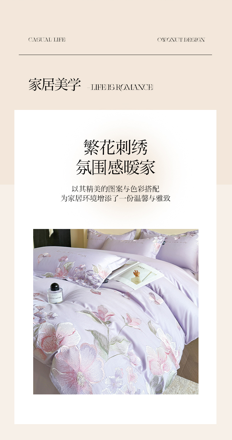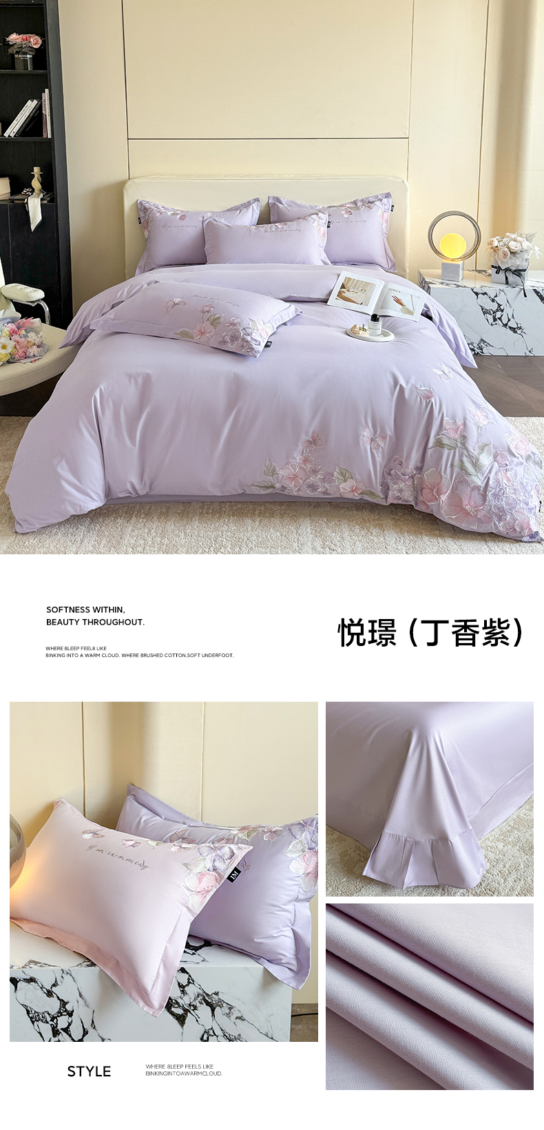 (总)乐美家纺 2026年春夏新品全棉刺绣花至系列四件套,花至(丁香紫),花至(芝士黄)