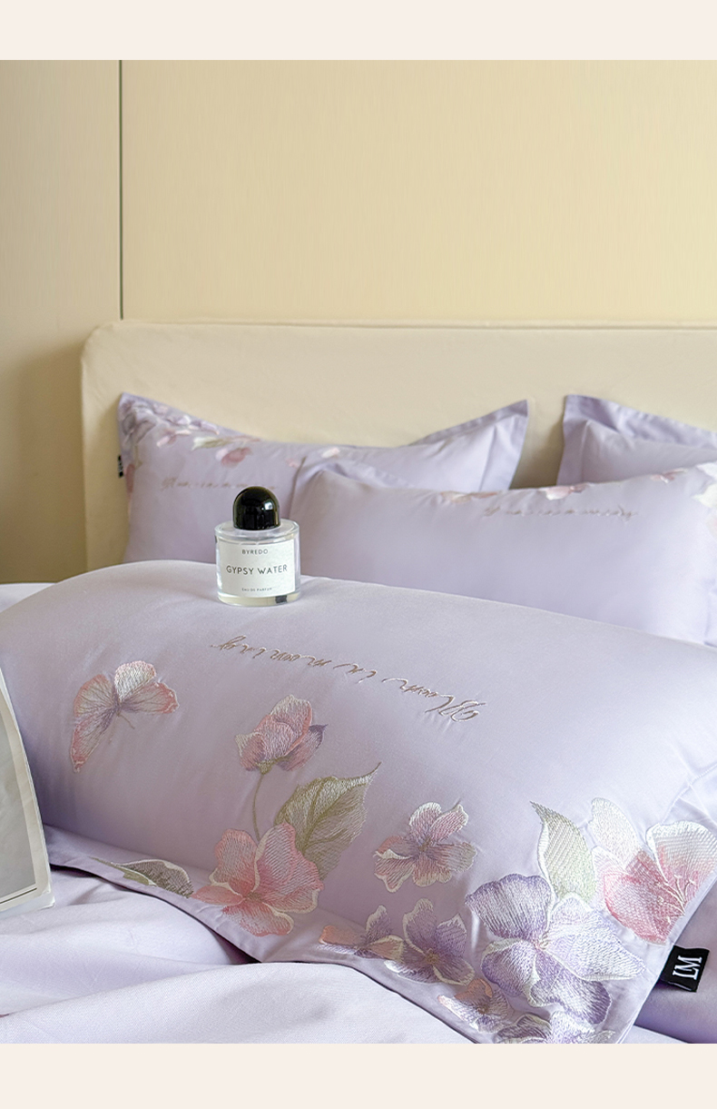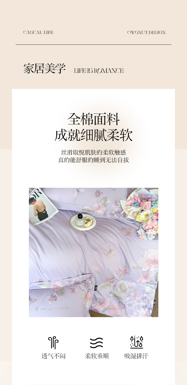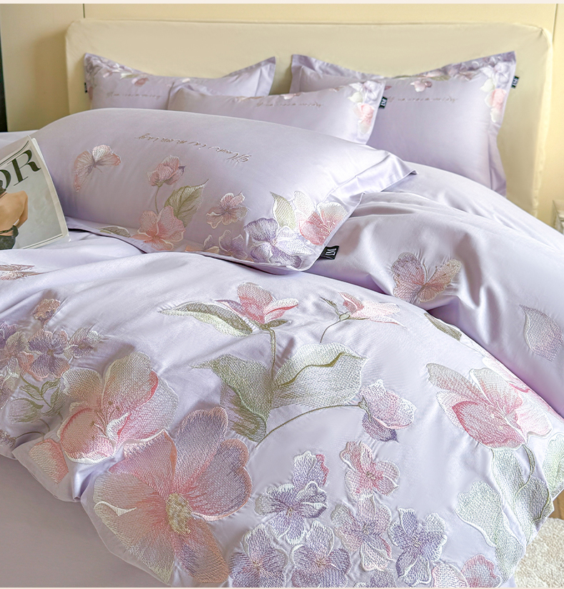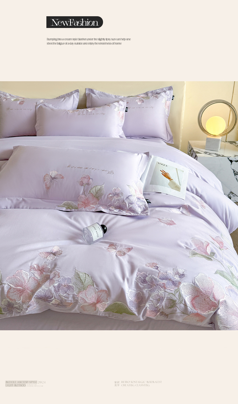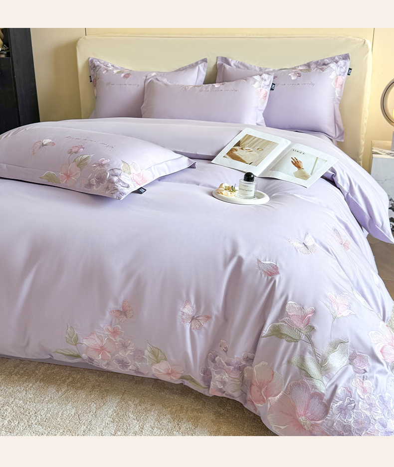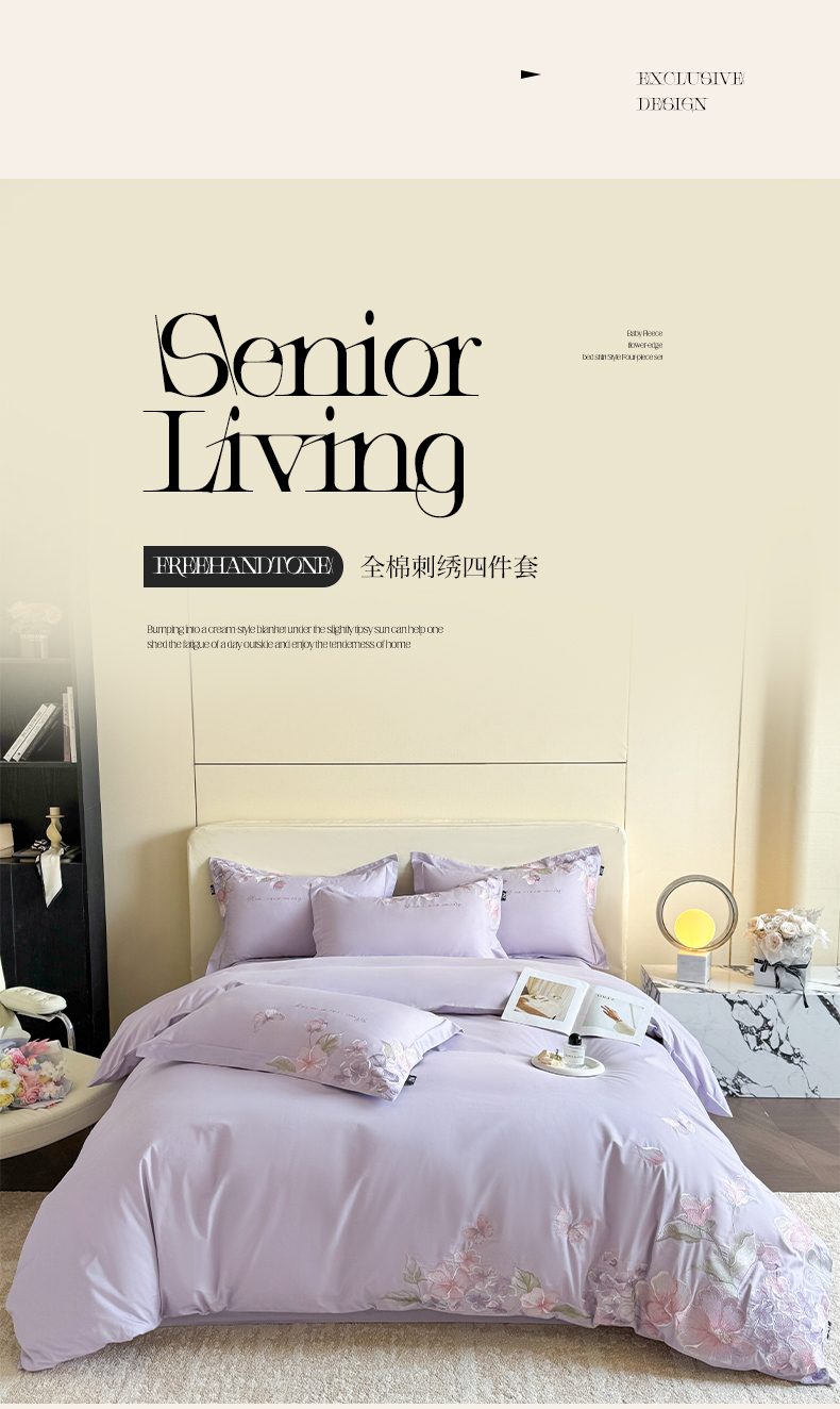 (总)乐美家纺 2026年春夏新品全棉刺绣花至系列四件套,花至(丁香紫),花至(芝士黄)