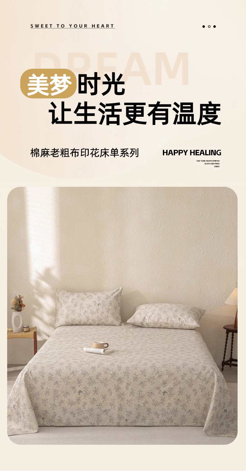 (总)棉乐町家居 2026新款亚麻老粗布印花床单,青岚,丁兰,岚溪,沐瑶,素然,晚棠,云舒