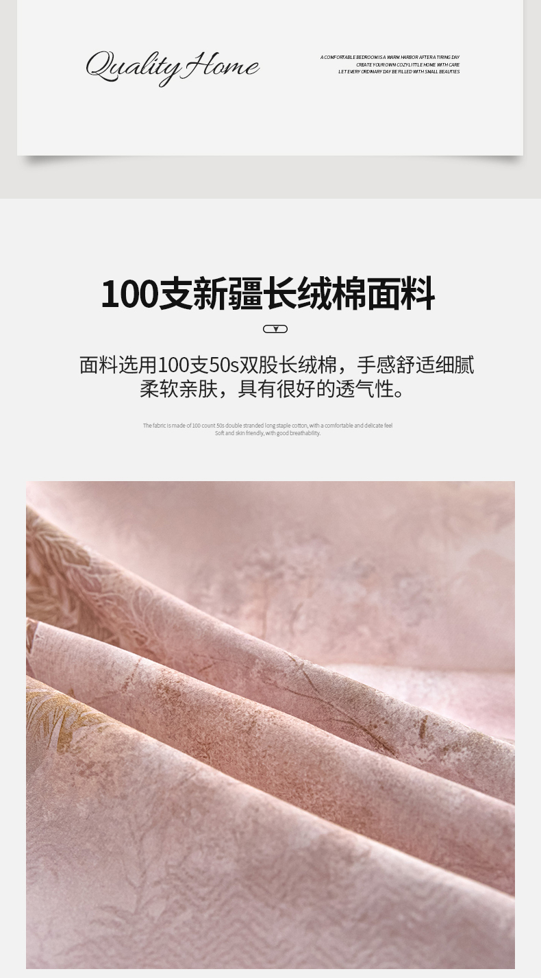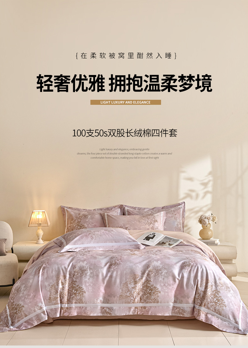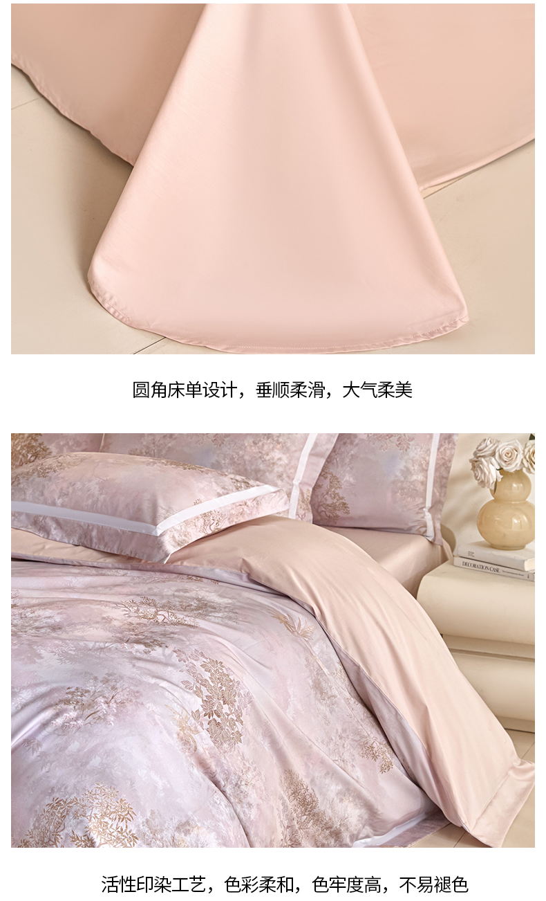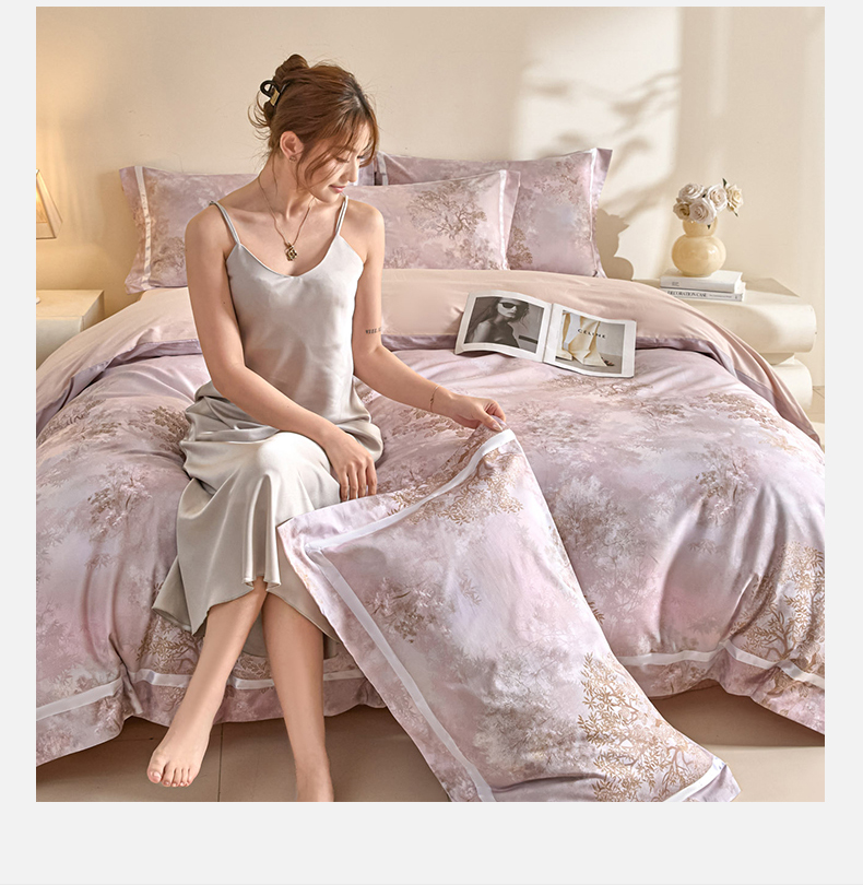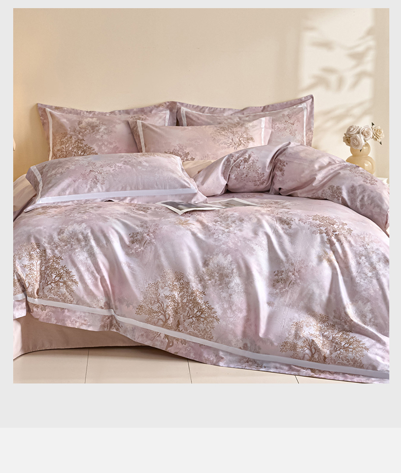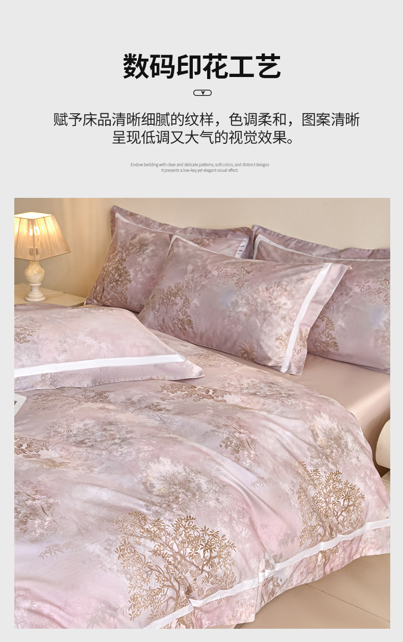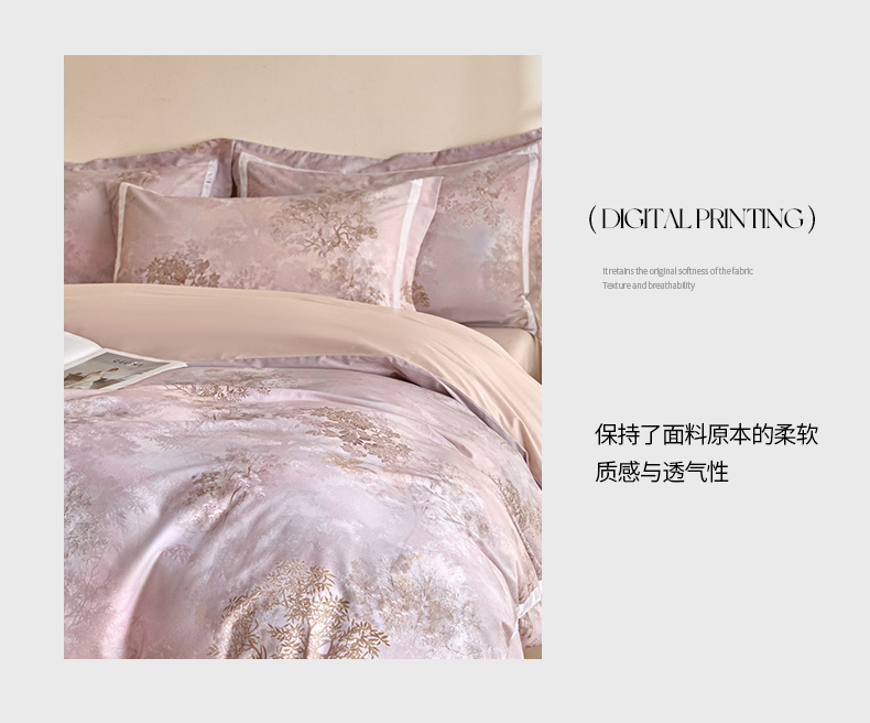 (总)新方向 【控价 提供买家秀】2026新款数码印花50s双股全棉贡缎长绒棉四件套-迷境(控价 标准328元 加大348元),迷境-蔷薇粉,迷境-爵士灰