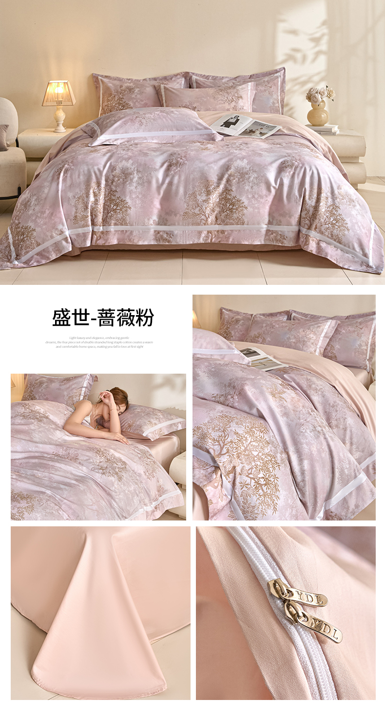 (总)新方向 【控价 提供买家秀】2026新款数码印花50s双股全棉贡缎长绒棉四件套-约定,约定-蔷薇粉,约定-香槟,约定-星月蓝