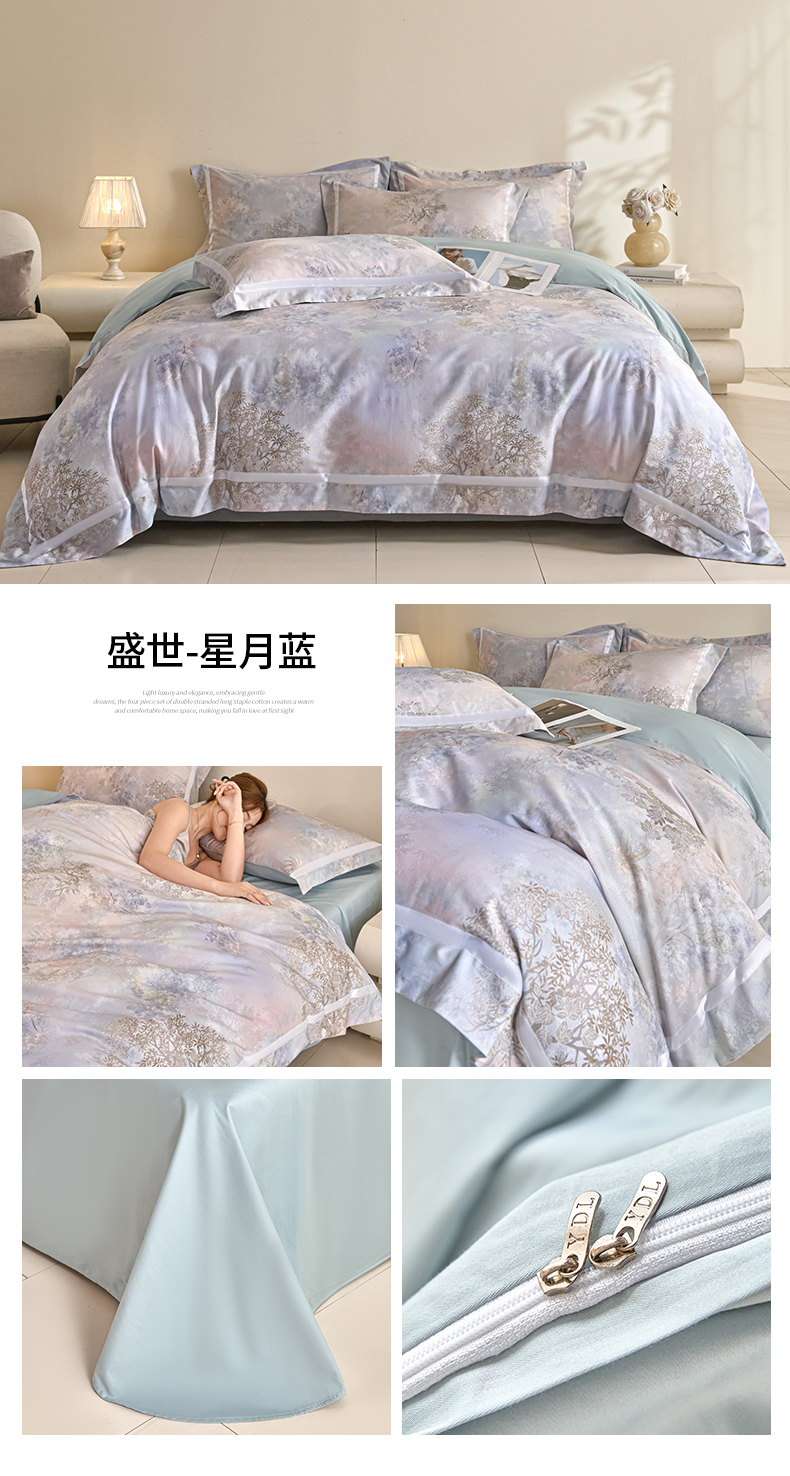 (总)新方向 【控价 提供买家秀】2026新款数码印花50s双股全棉贡缎长绒棉四件套-怦然心动,怦然心动-蔷薇粉,怦然心动-香槟,怦然心动-星月蓝