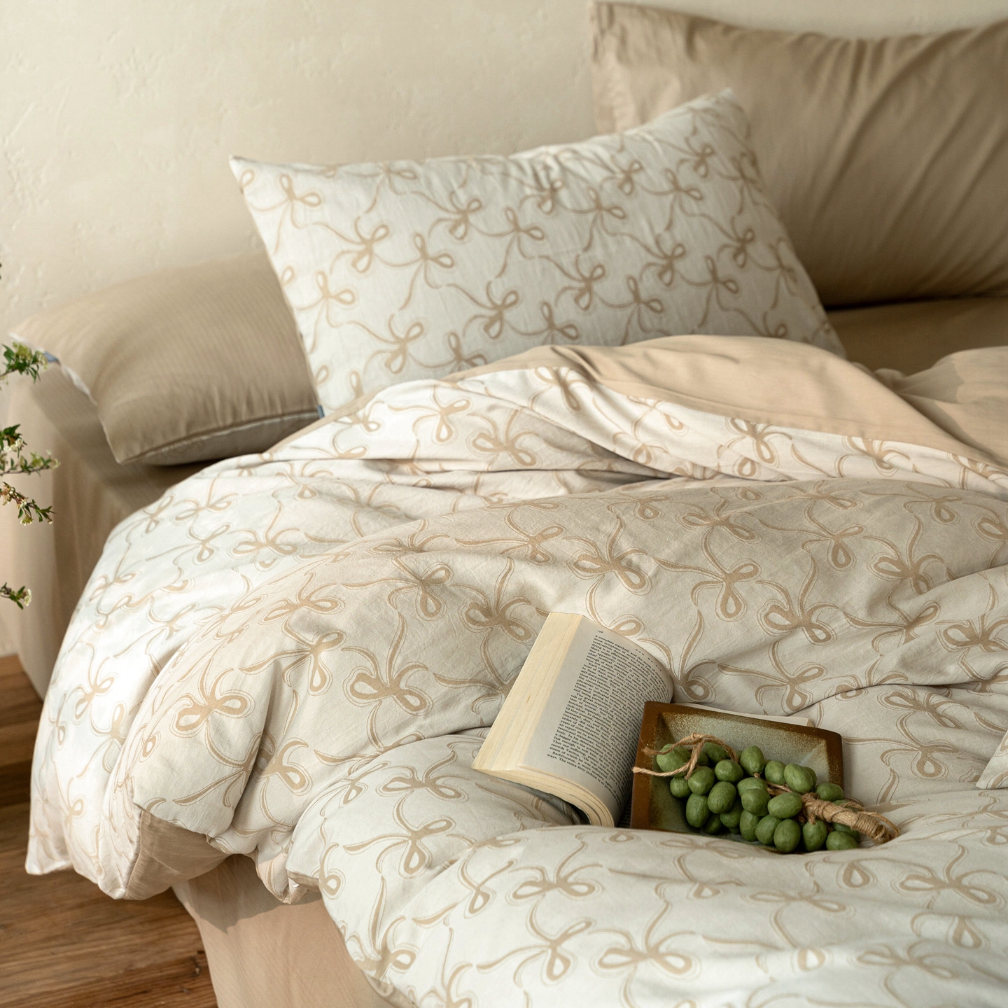 当前位置: 91家纺网 > 商品网购 > 床品套件 > 四件套 > 全棉普通四件套 > 时光里 2026新款全棉纯棉60支色织水洗提花四件套 予栖--米灰