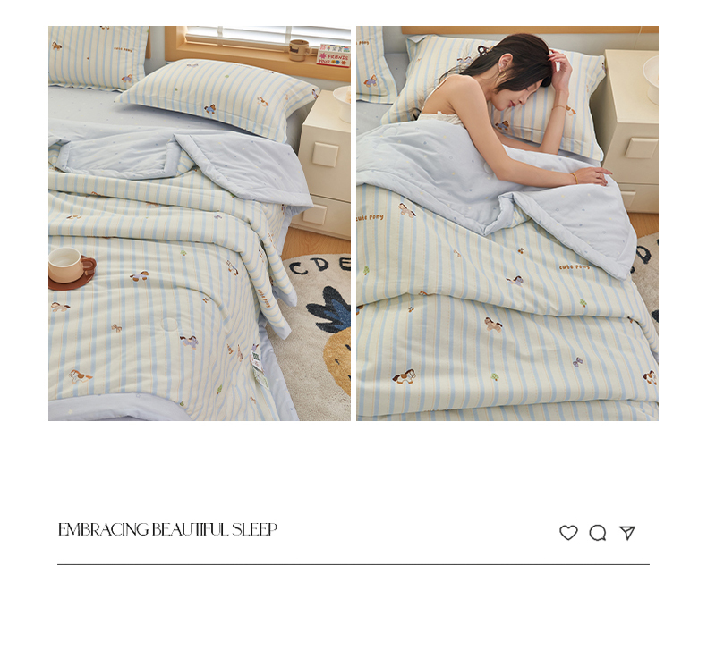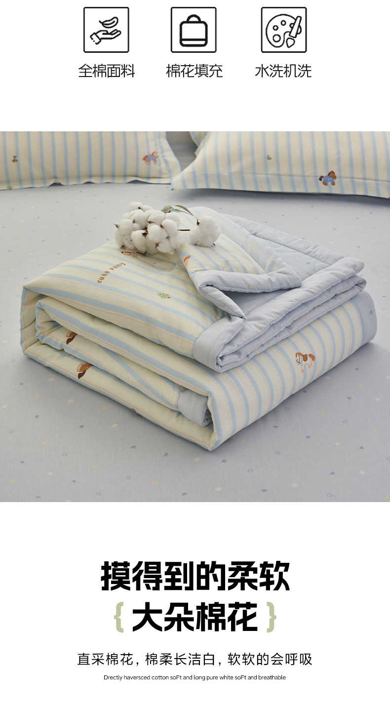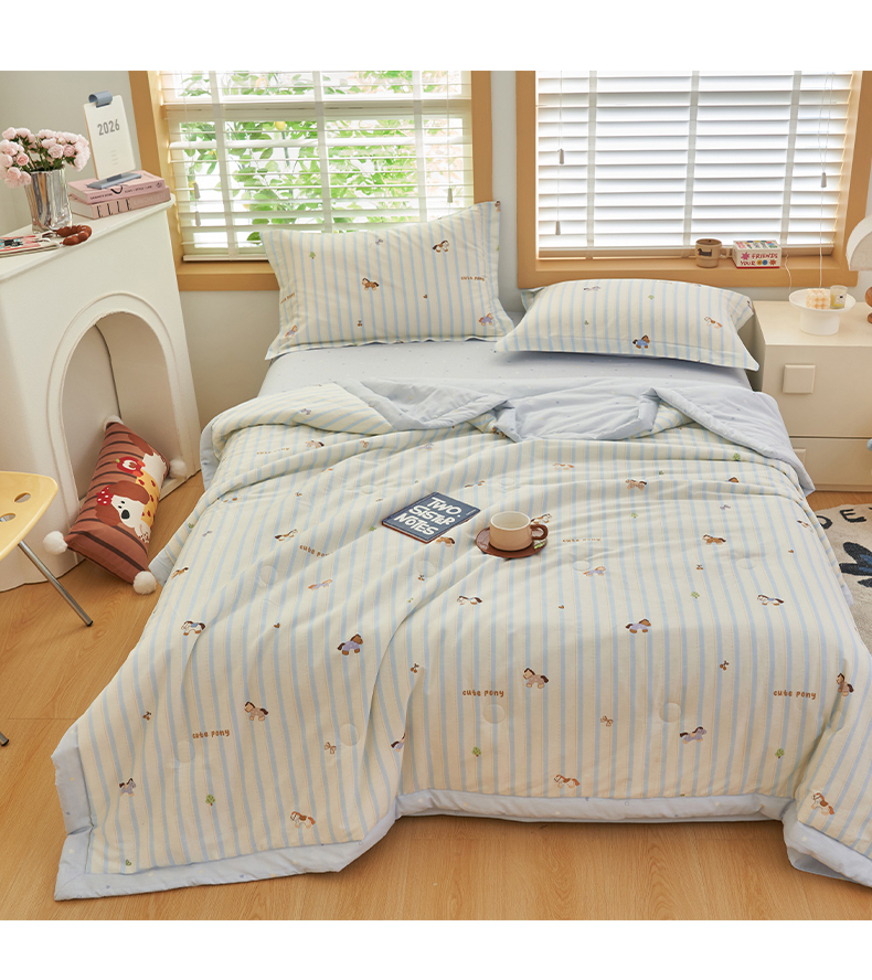 当前位置: 91家纺网 > 商品网购 > 被子 > 夏被 > 简如 2026新款印花里外全棉夏凉被四件套 条纹小马