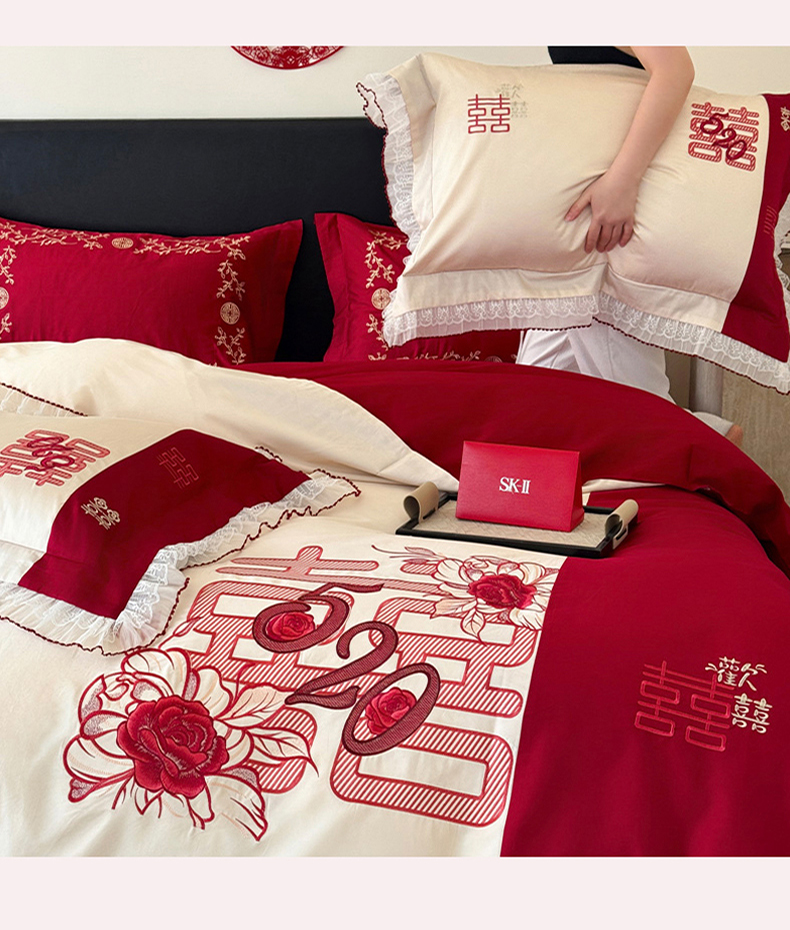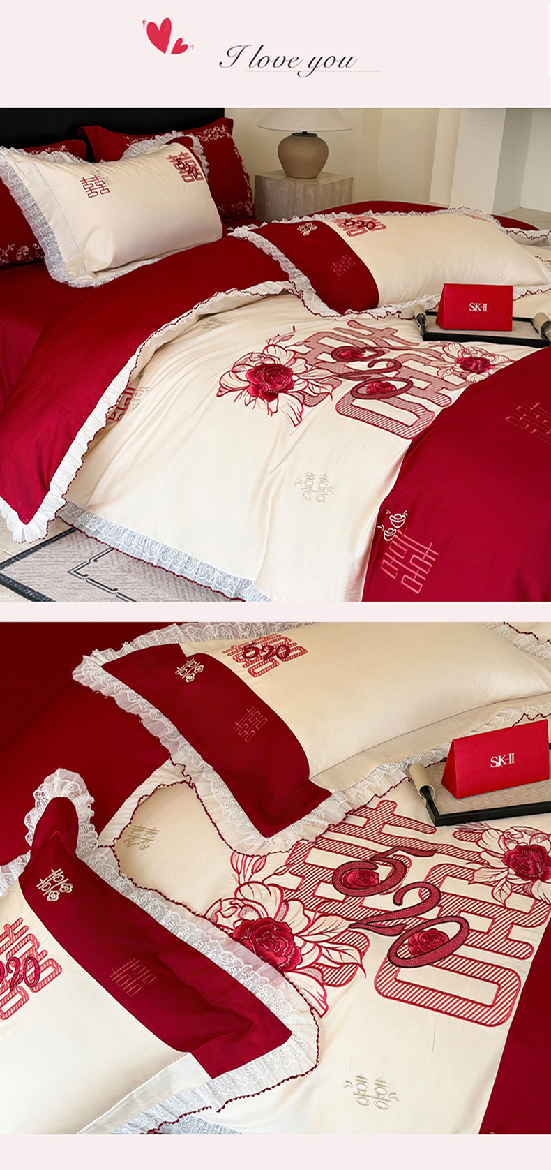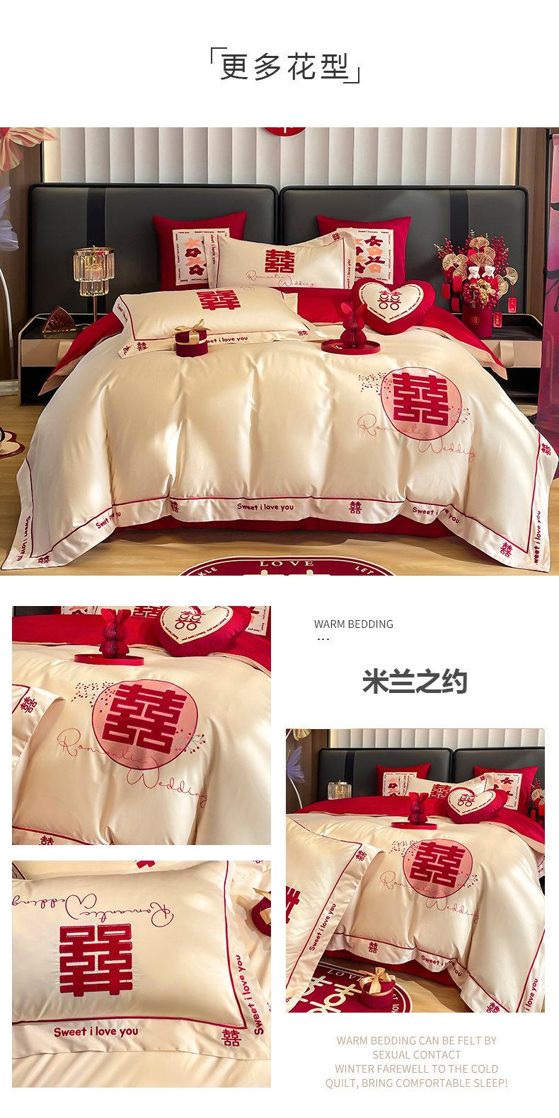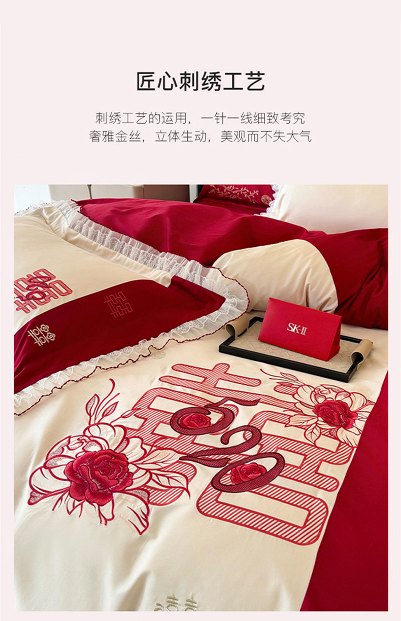 (总)甜咪咪婚庆 2025新款50支长绒棉全棉婚庆床单床盖四件套多件套刺绣工艺,洛可可,爱恋小熊,爱意久久,多子多福,花田喜事,节节高升,克拉恋人,浪漫情怀,怦然心动红,怦然心动玉,甜心玫瑰,温莎公主,伊甸园,醉红妆