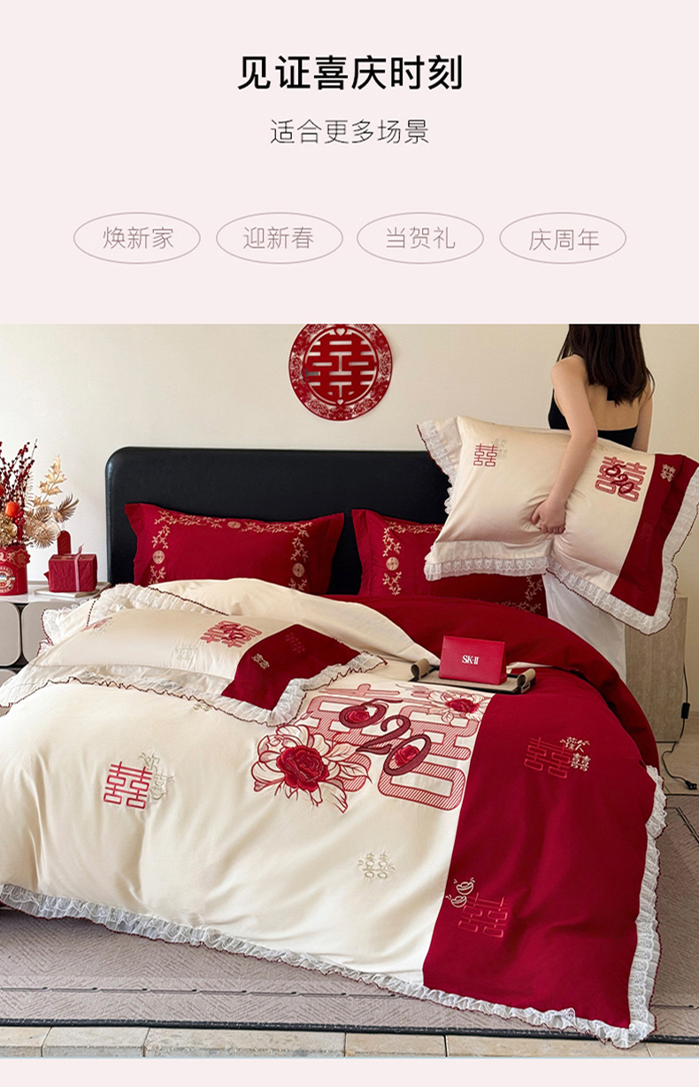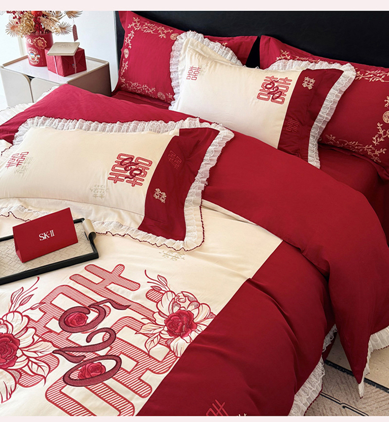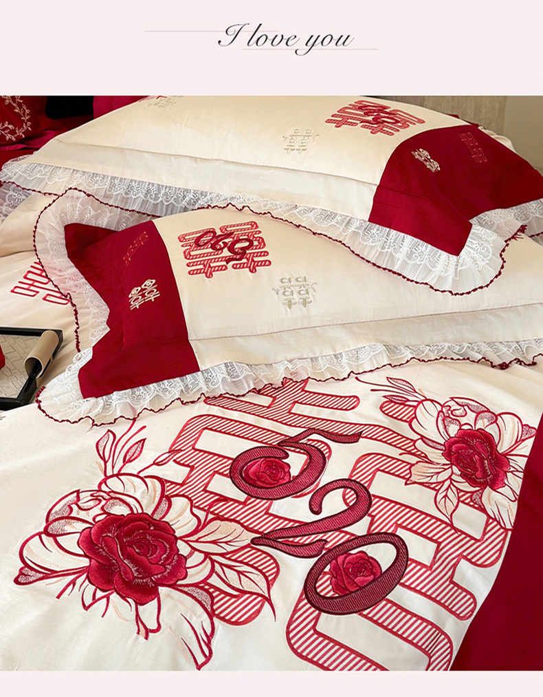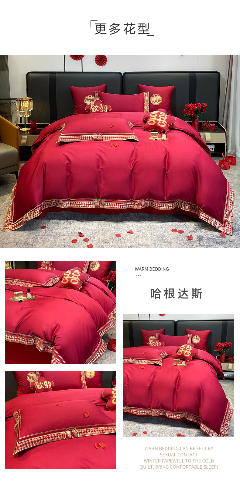 (总)甜咪咪婚庆 2025新款50支长绒棉全棉婚庆床单床盖四件套多件套刺绣工艺,洛可可,爱恋小熊,爱意久久,多子多福,花田喜事,节节高升,克拉恋人,浪漫情怀,怦然心动红,怦然心动玉,甜心玫瑰,温莎公主,伊甸园,醉红妆