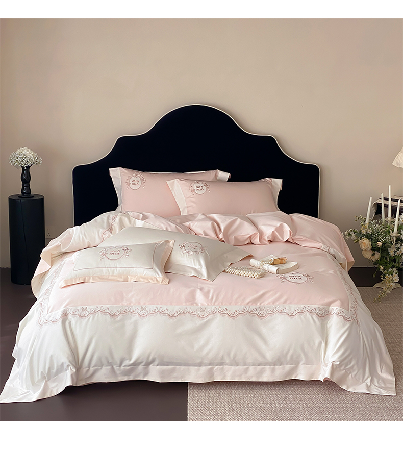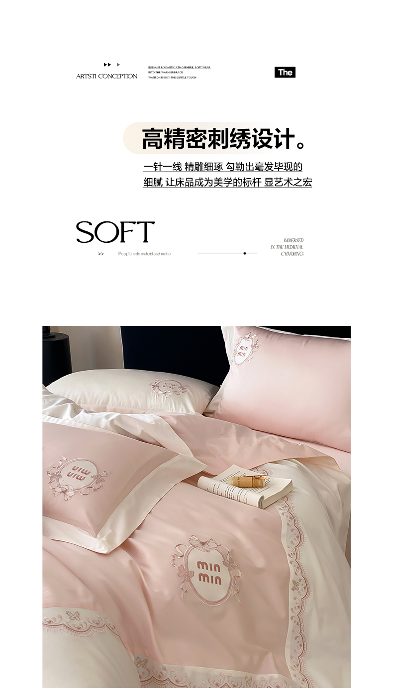 • 91家纺网 家纺一手货源 找家纺 树下 2026新款A类100支50S双股刺绣高支高密贡缎全棉长绒棉四件套-柔堇 柔堇-粉,柔堇-粉