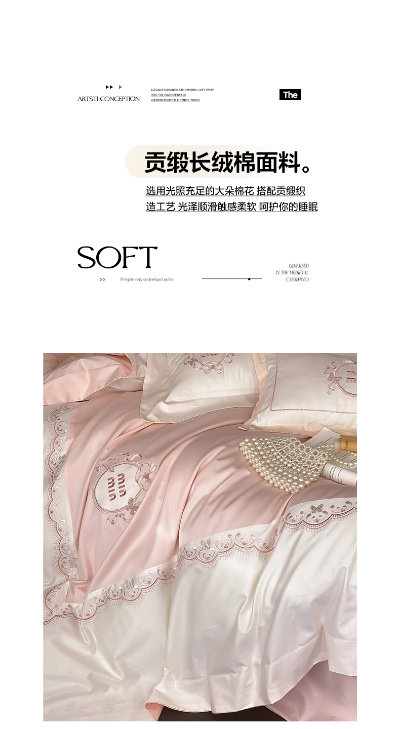 当前位置: 91家纺网 > 商品网购 > 床品套件 > 四件套 > 长绒棉四件套 > 树下 2026新款a类100支50s双股刺绣高支高密贡缎长绒棉四件套全棉四件套-蝶吟 蝶吟-粉