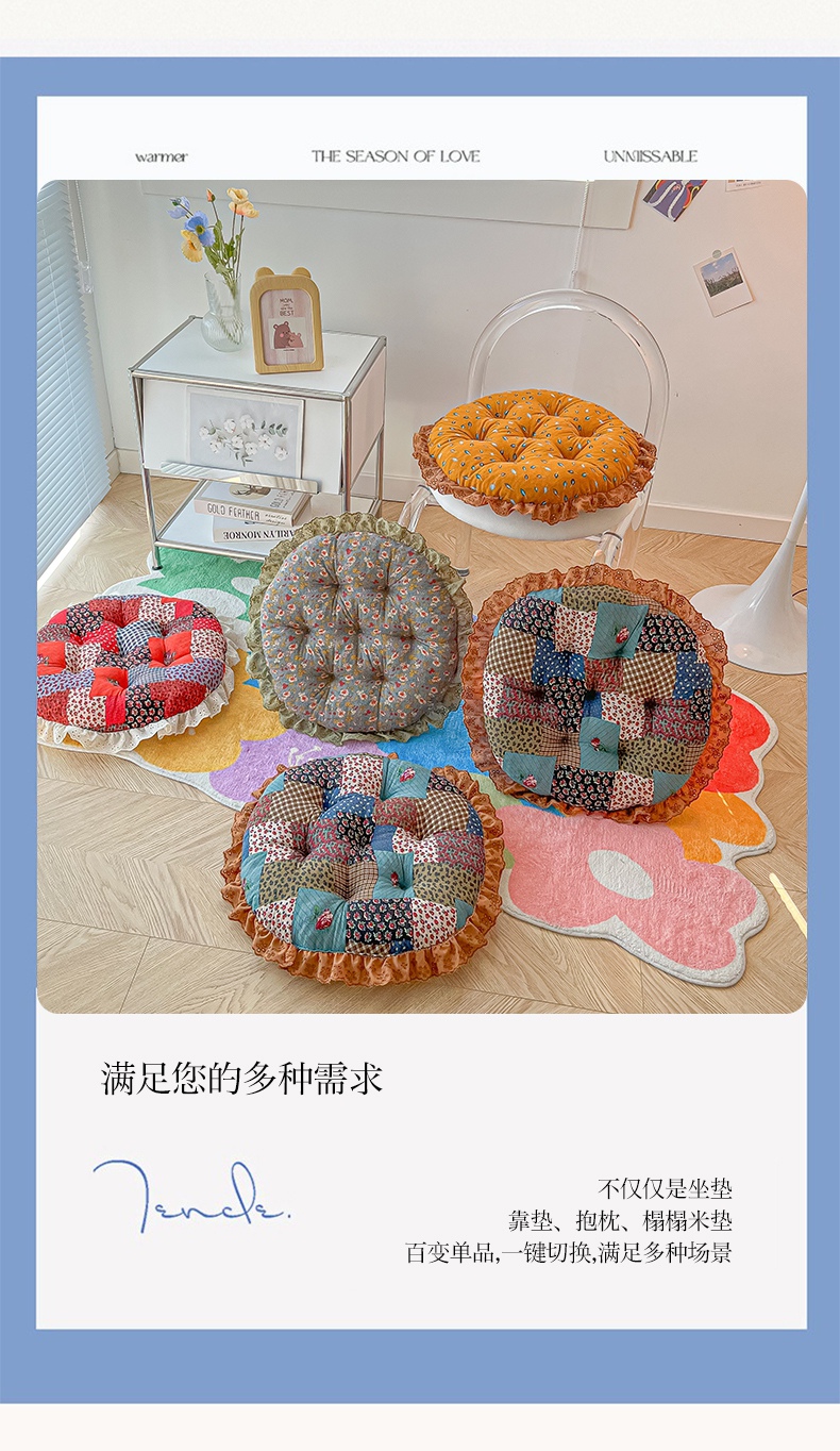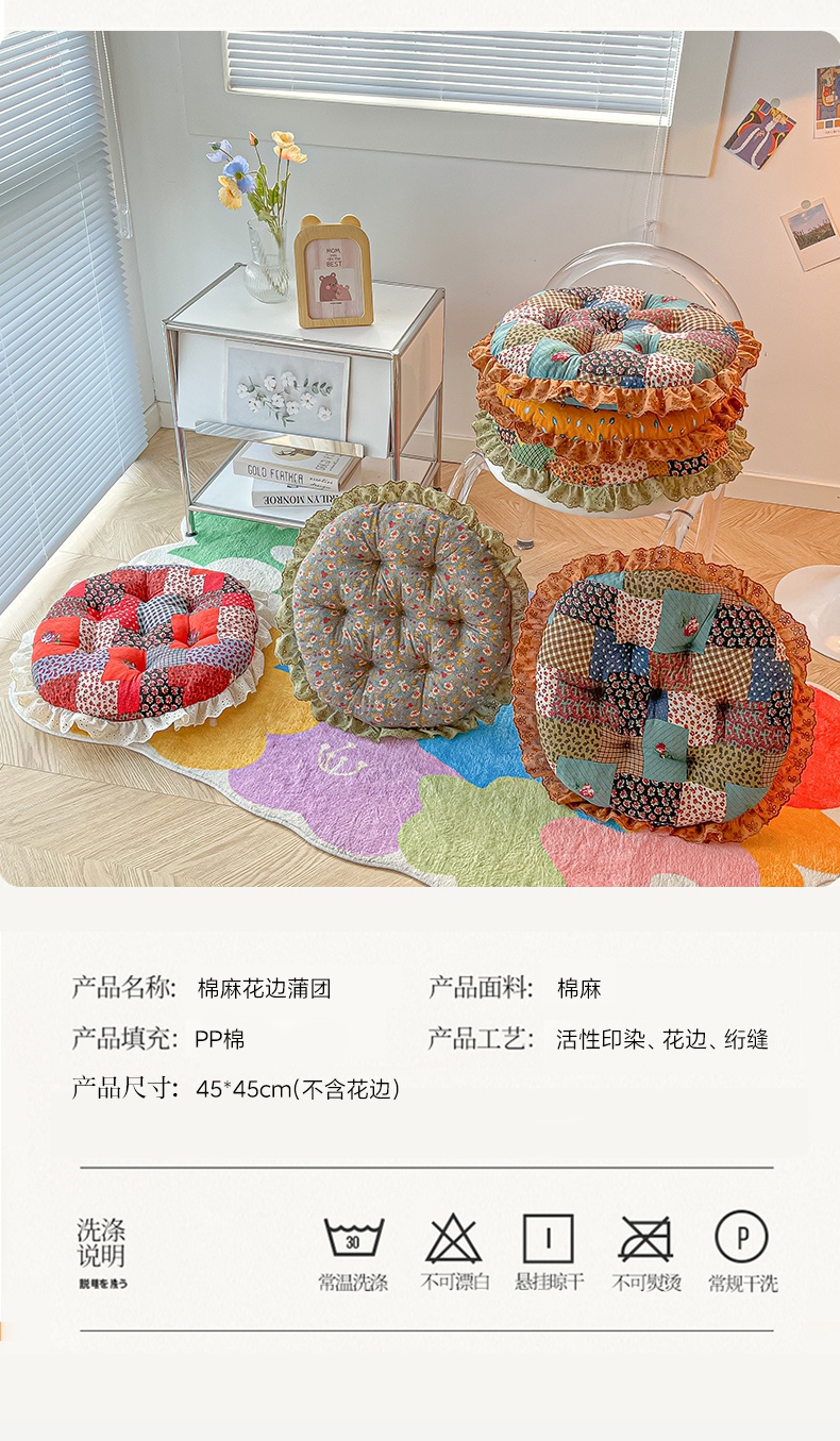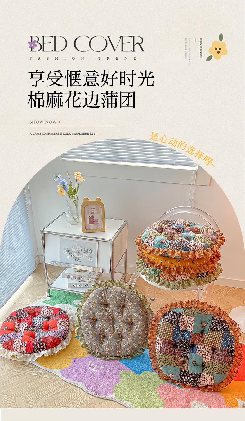 当前位置: 91家纺网 > 商品网购 > 居家布艺 > 坐垫/椅垫/沙发垫 > 椅垫 > 座享家 2026新款拼色仿棉麻花边团蒲坐垫 姚黄