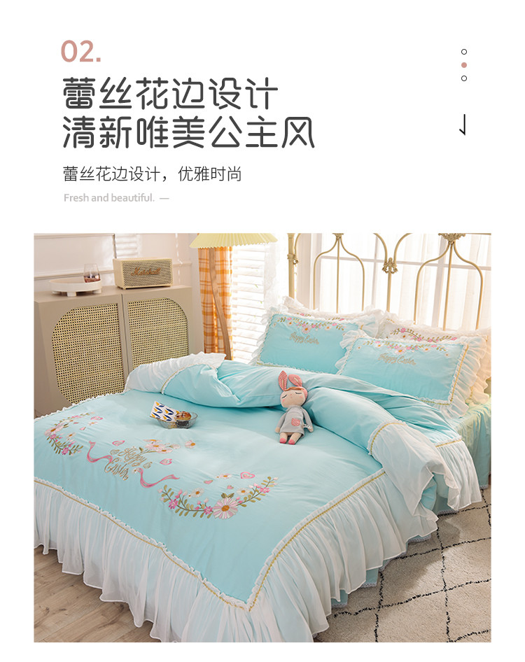 (总)迪欧芙2023新款纯棉全棉水洗棉刺绣工艺款四件套艾莉丝,艾莉丝-粉,艾莉丝-奶油白,艾莉丝-天空蓝