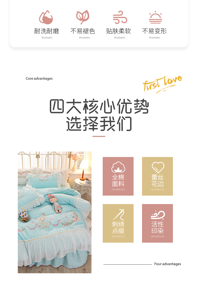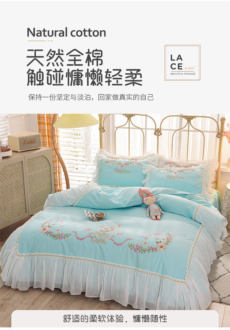 (总)迪欧芙 2024春季纯棉13372公主风四件套刺绣花边四件套爱的结语系列,爱的结语-白,爱的结语-粉,爱的结语-蓝