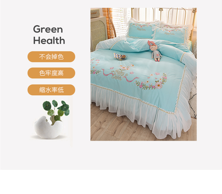 (总)迪欧芙 2023新款纯棉全棉水洗棉刺绣工艺款四件套-艾薇,艾薇-粉,艾薇-绿,艾薇-奶油白