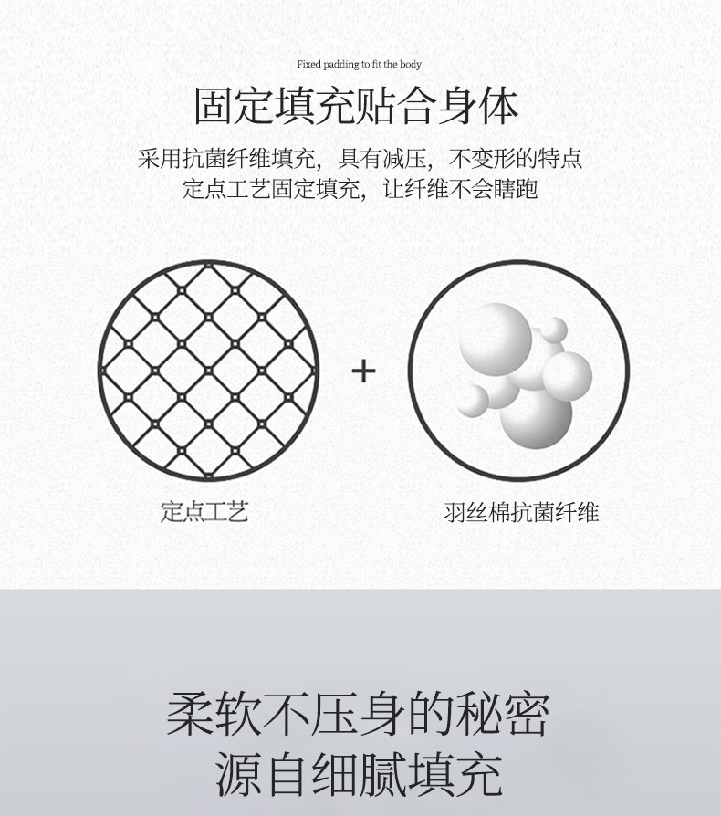 填充纤维种类: 100%聚酯纤维(英威达抗菌纤维)