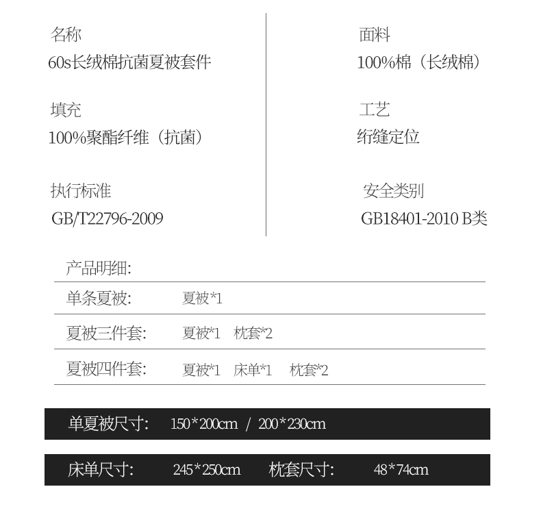 商品名称:(总)吾秀 60长绒棉夏被抗菌 60S全棉夏被四件套 空调被