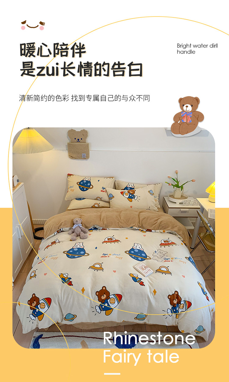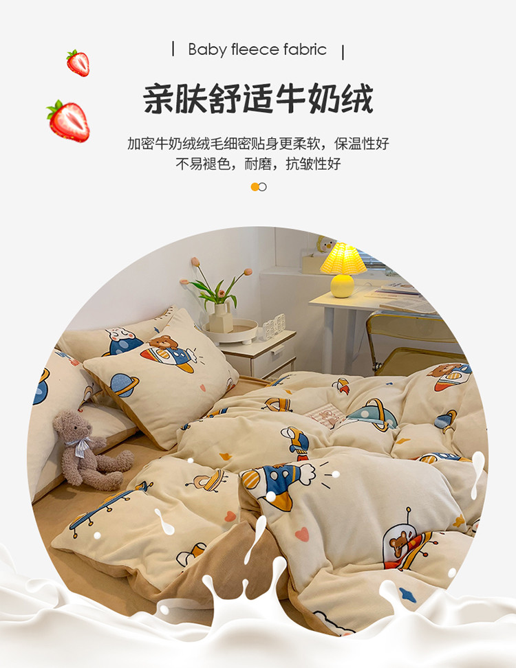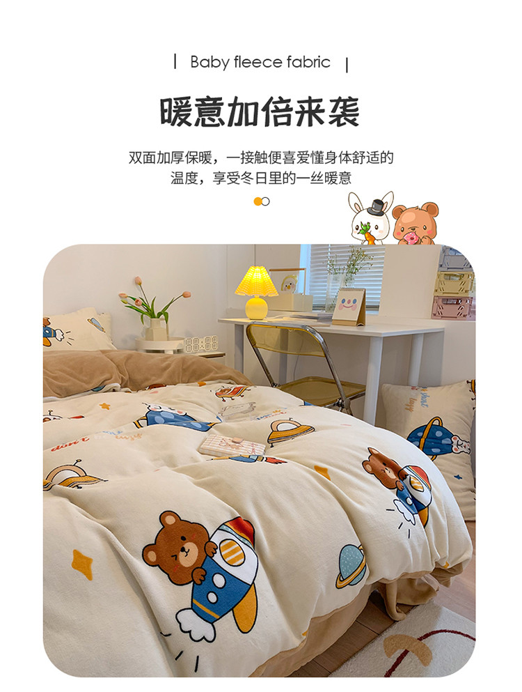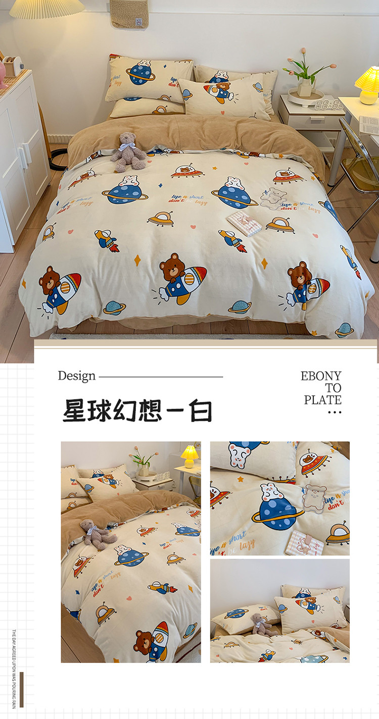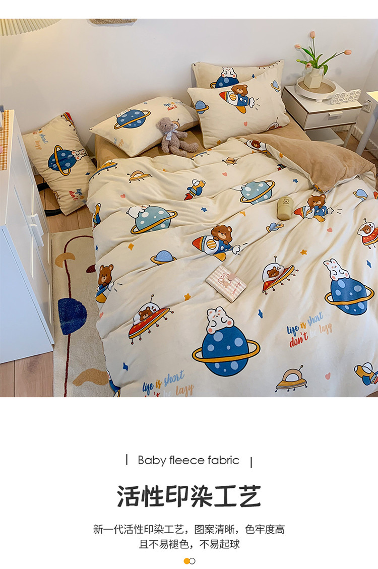 澳萝拉2021高克重卡通清新牛奶绒四件套水晶法莱绒星际幻想白