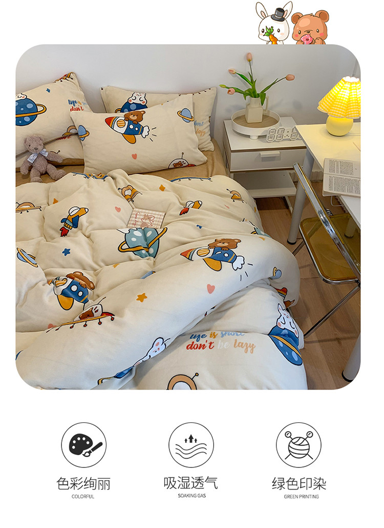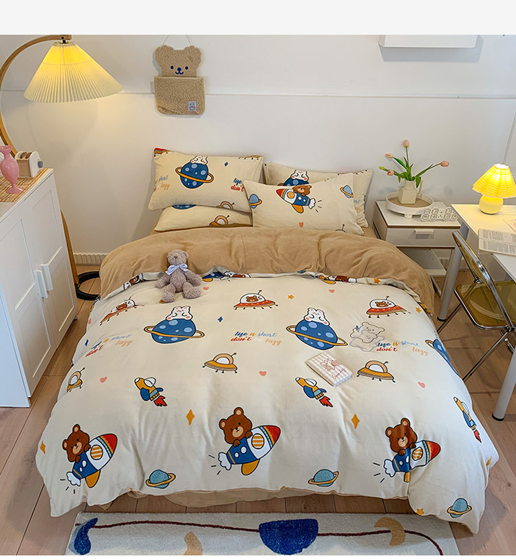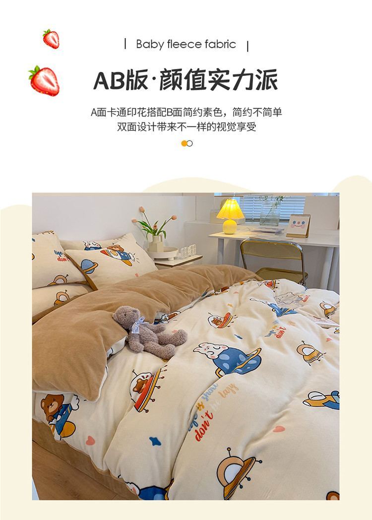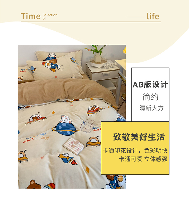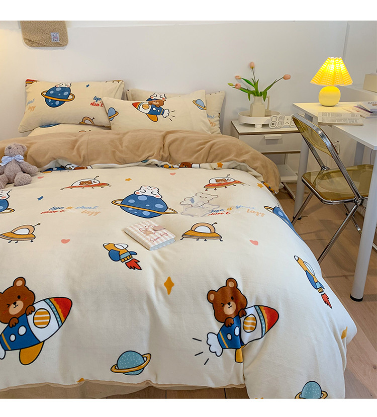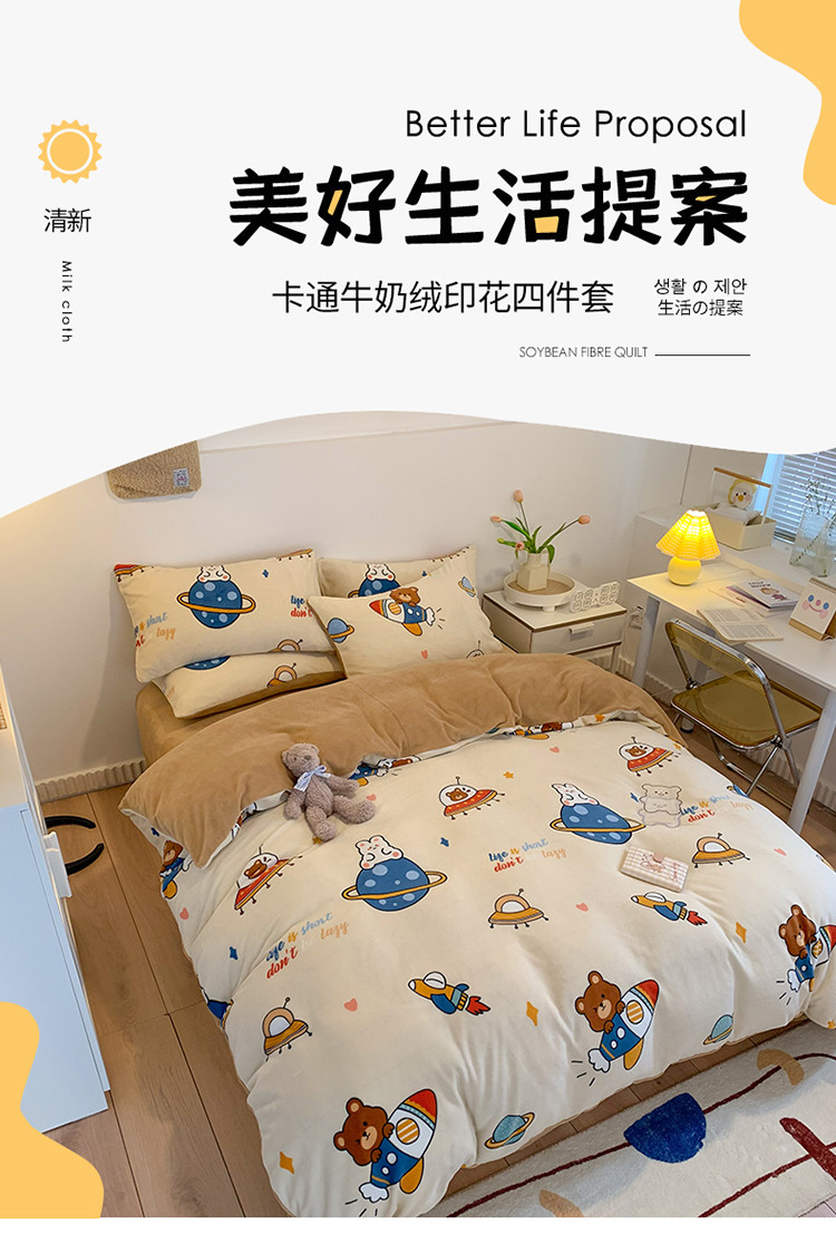 澳萝拉2021高克重卡通清新牛奶绒四件套水晶法莱绒星际幻想白