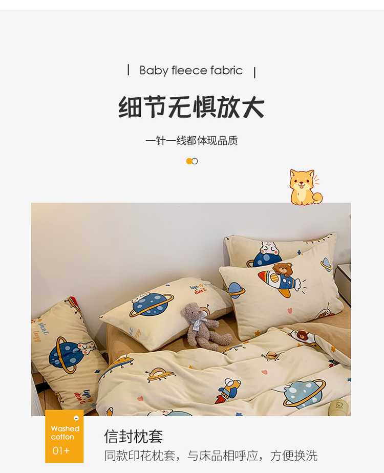 商品名称:澳萝拉2021高克重卡通清新牛奶绒四件套水晶法莱绒星际幻想白