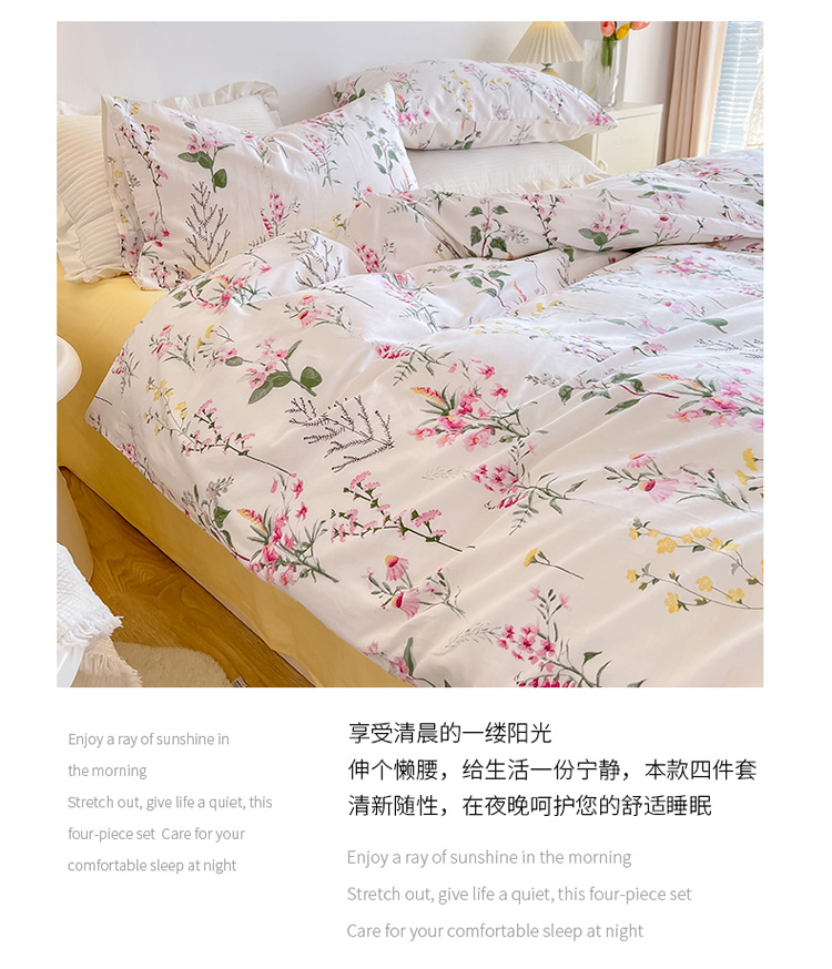 当前位置: 91家纺网 > 商品网购 > 床品套件 > 四件套 > 全棉普通四件套 > 艾沁家纺13372纯棉碎花四件套花间