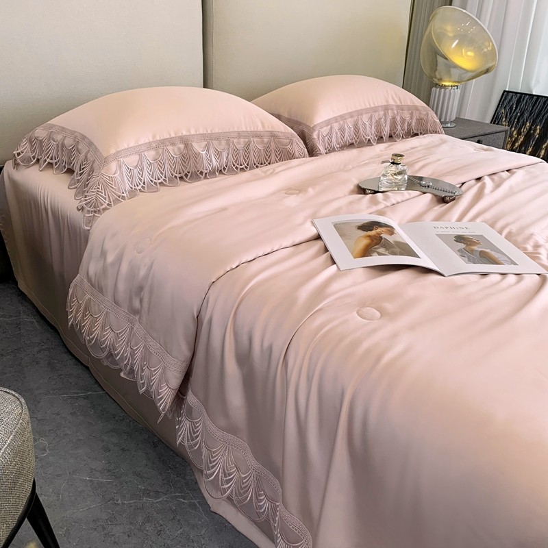 (总)榻尚家居 2025新款天丝床盖夏被夏凉被空调被四件套-佩利兹,佩利兹床盖夏被四件套-粉色,佩利兹床盖夏被四件套-香槟
