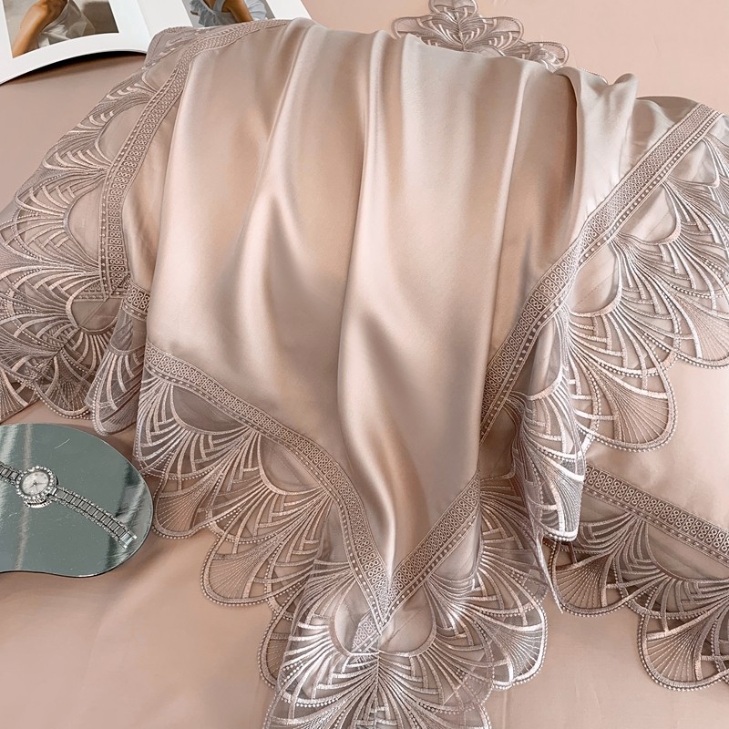 (总)榻尚家居 2024新款天丝棉法式镂空工艺款镂空四件套--云绡(会员减20),豆沙色,金芥色,优雅灰,月光绿,珍珠白,珠玉粉