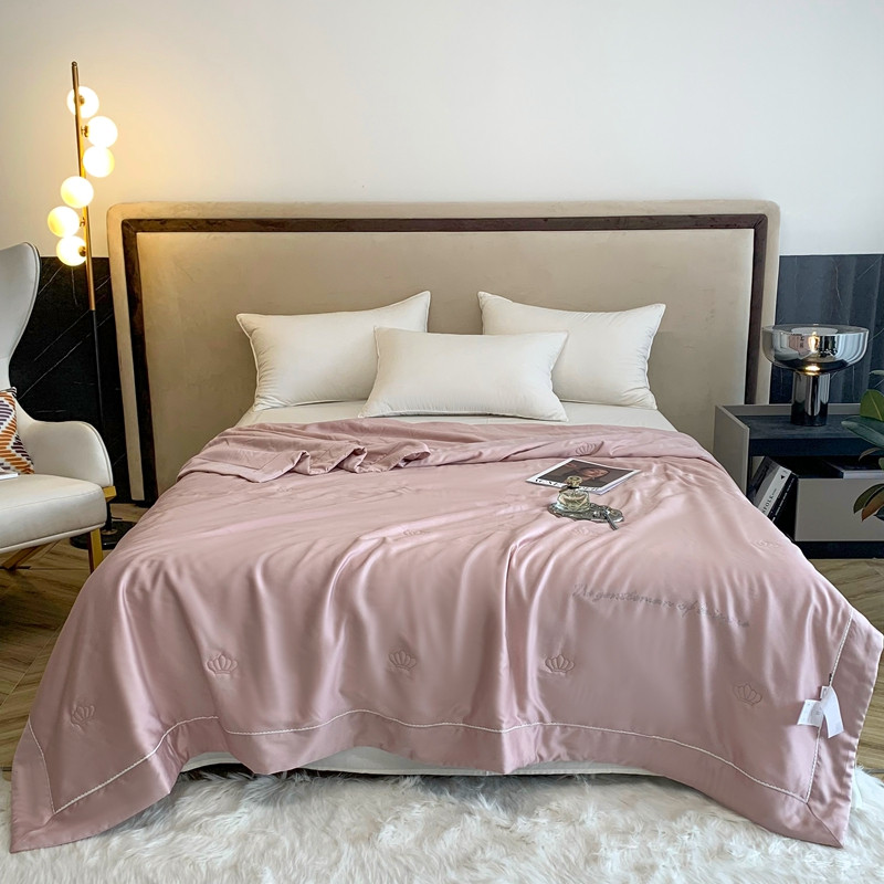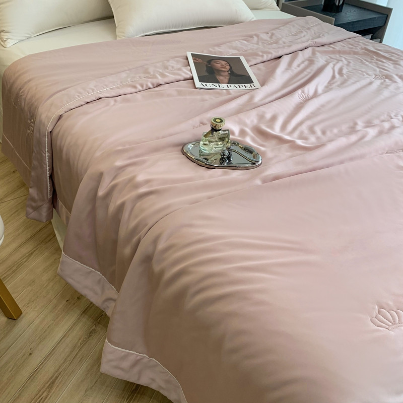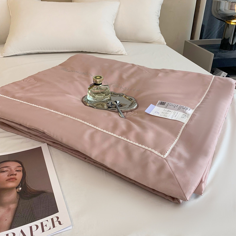 (总)榻尚家居 2025新款天丝床盖夏被夏凉被空调被四件套-佩利兹,佩利兹床盖夏被四件套-粉色,佩利兹床盖夏被四件套-香槟