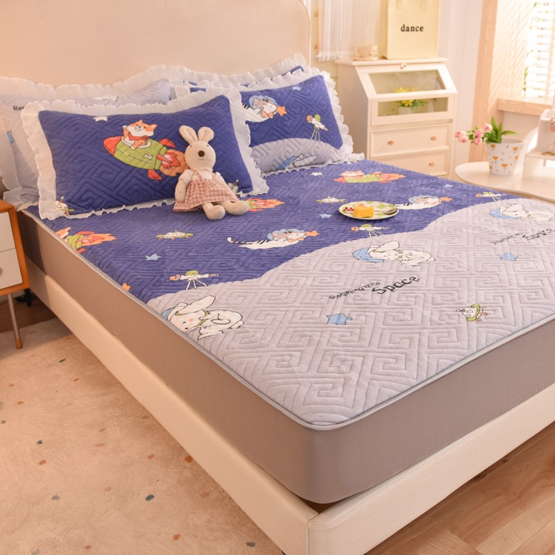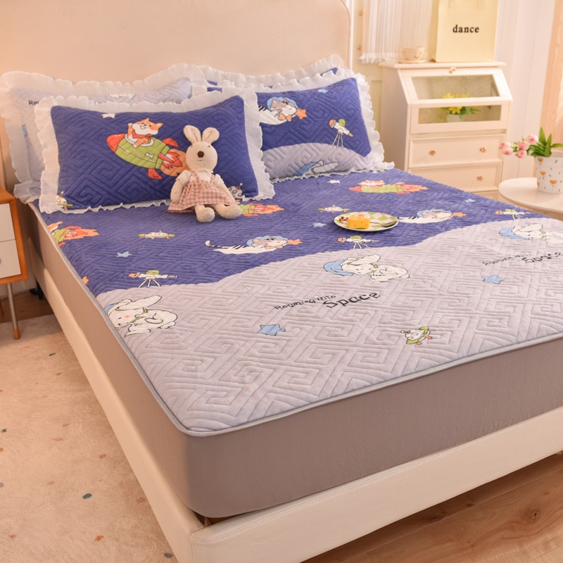 商品名称:甜之梦 2025新款牛奶绒印花夹棉花边系列单品床笠 喵星球