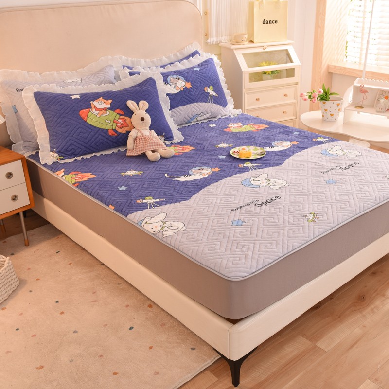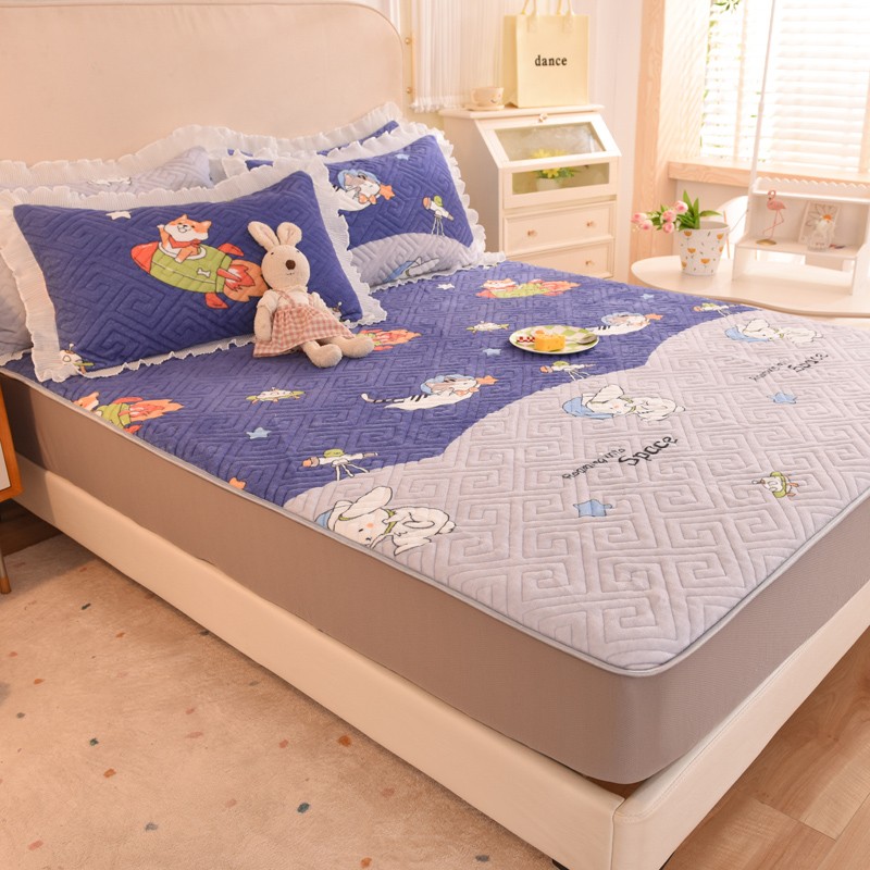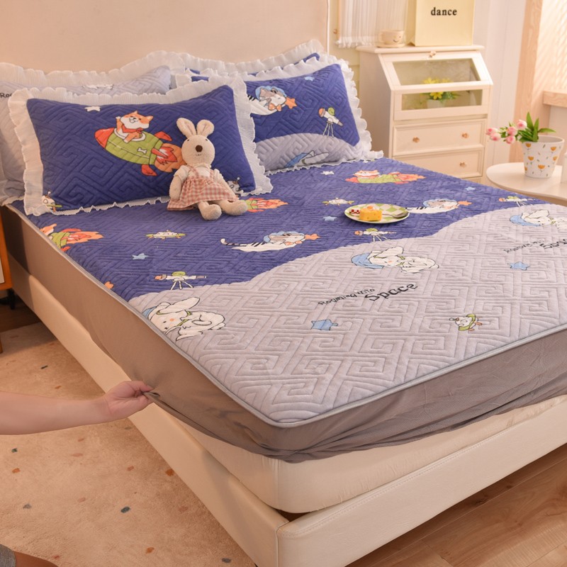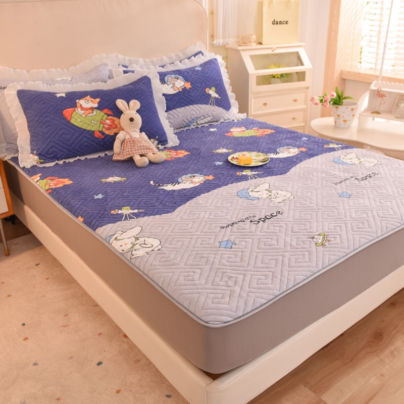 甜之梦 2025新款牛奶绒印花夹棉花边系列单品床笠 喵星球