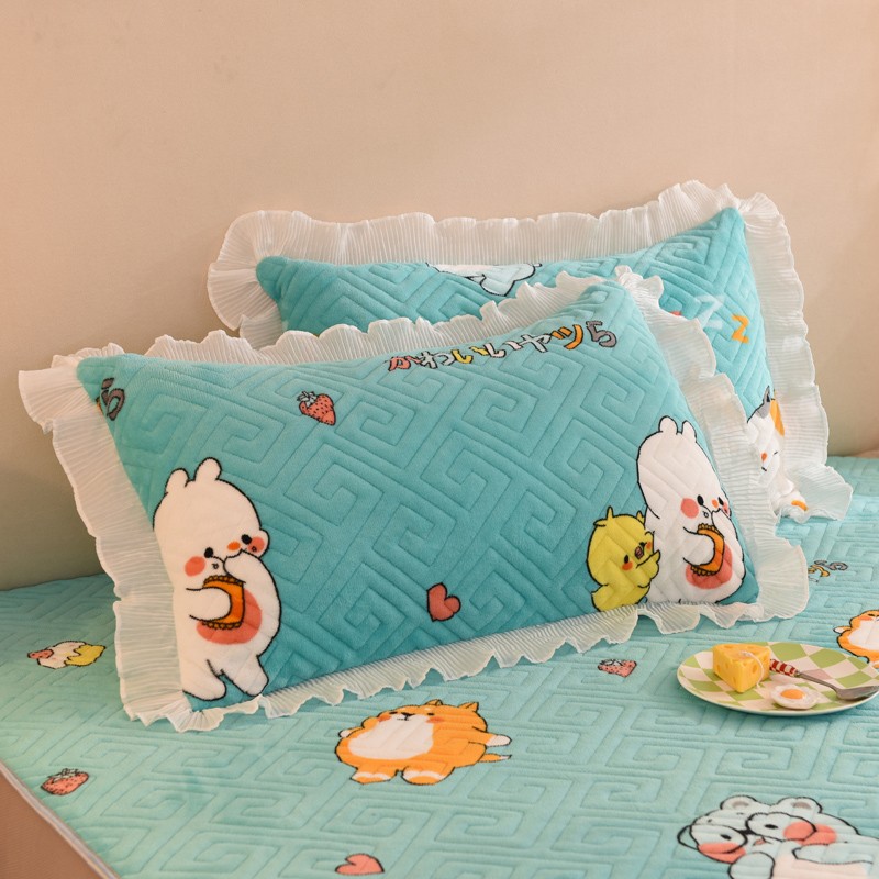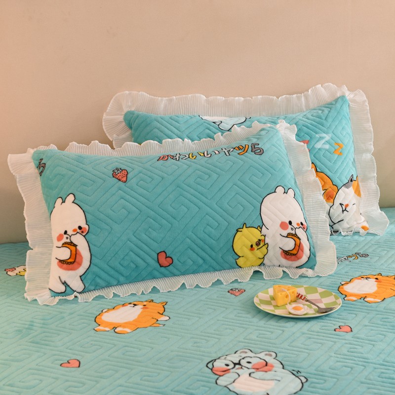 商品名称:甜之梦 2025新款牛奶绒印花夹棉花边系列单品枕套 乖乖熊
