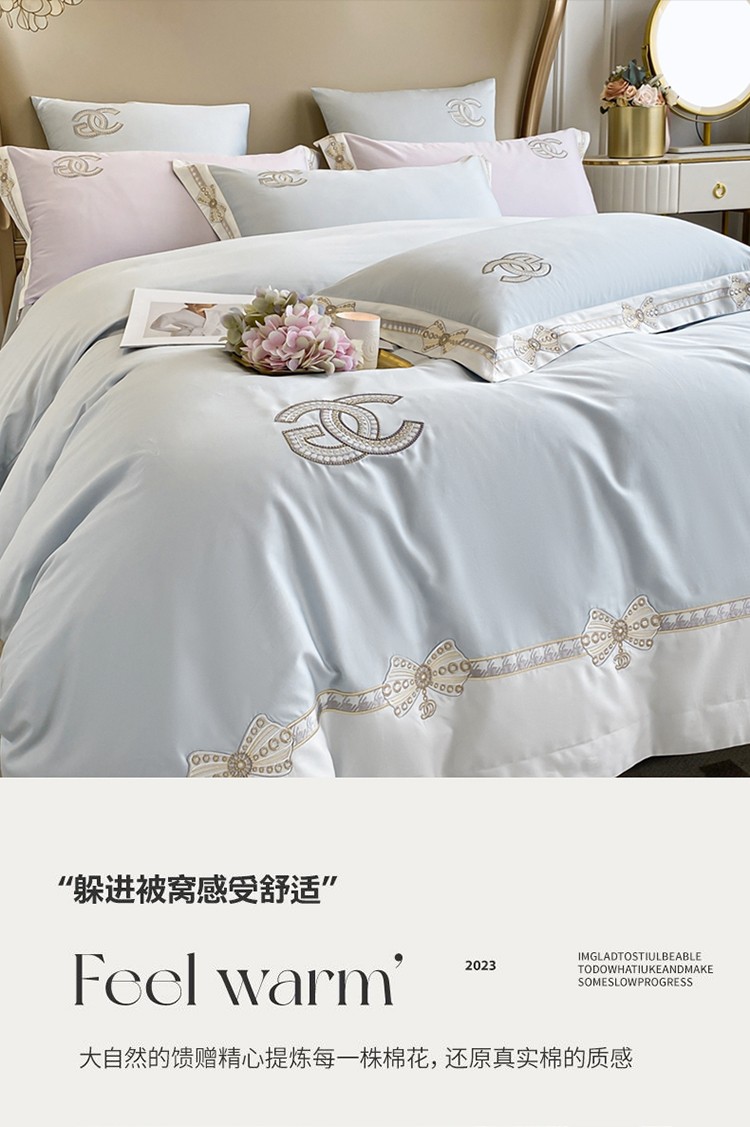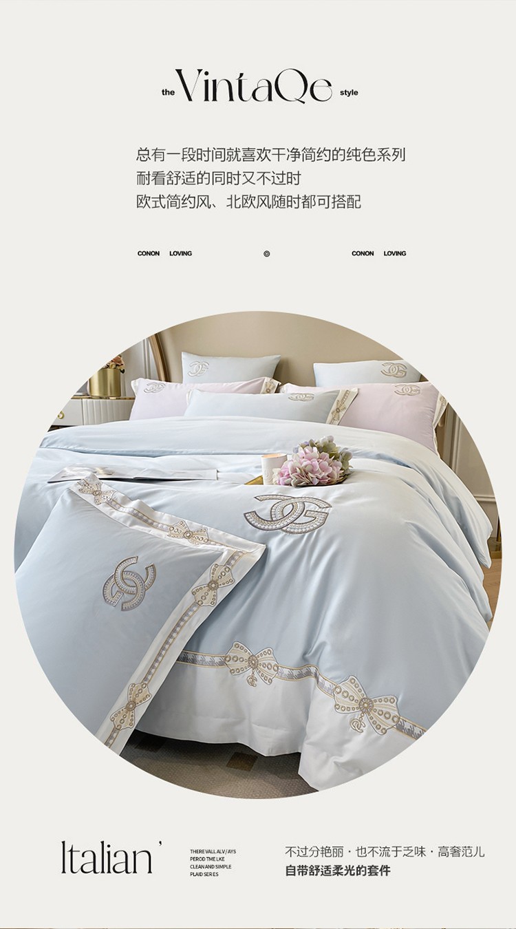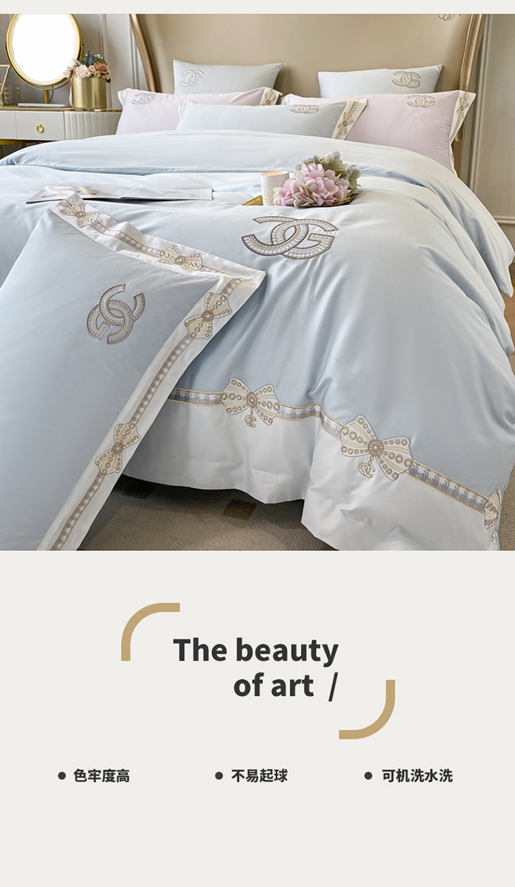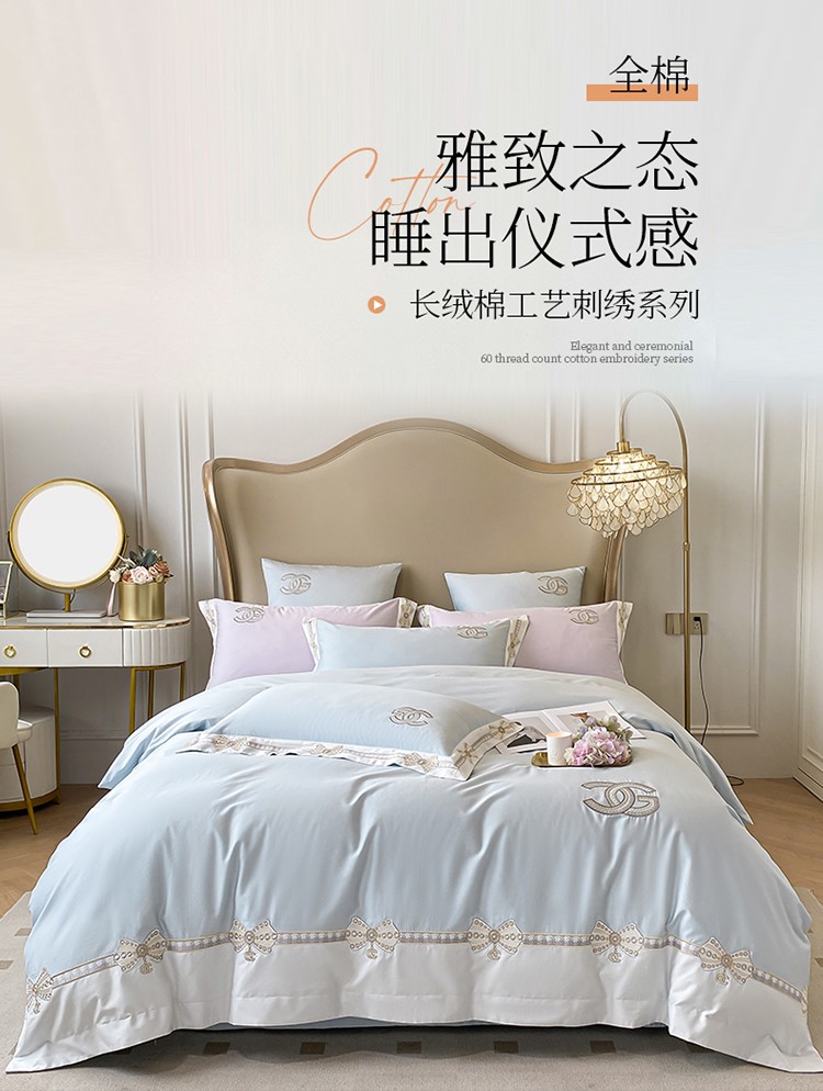 (总)品家居2021新款贝拉花园180支全棉澳棉刺绣四件套,贝拉花园-粉,贝拉花园-蓝