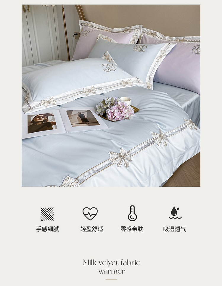 (总)2025新款牛奶绒拼纱四件套-洛可可,白色,粉紫,蓝色,浅灰色,水绿